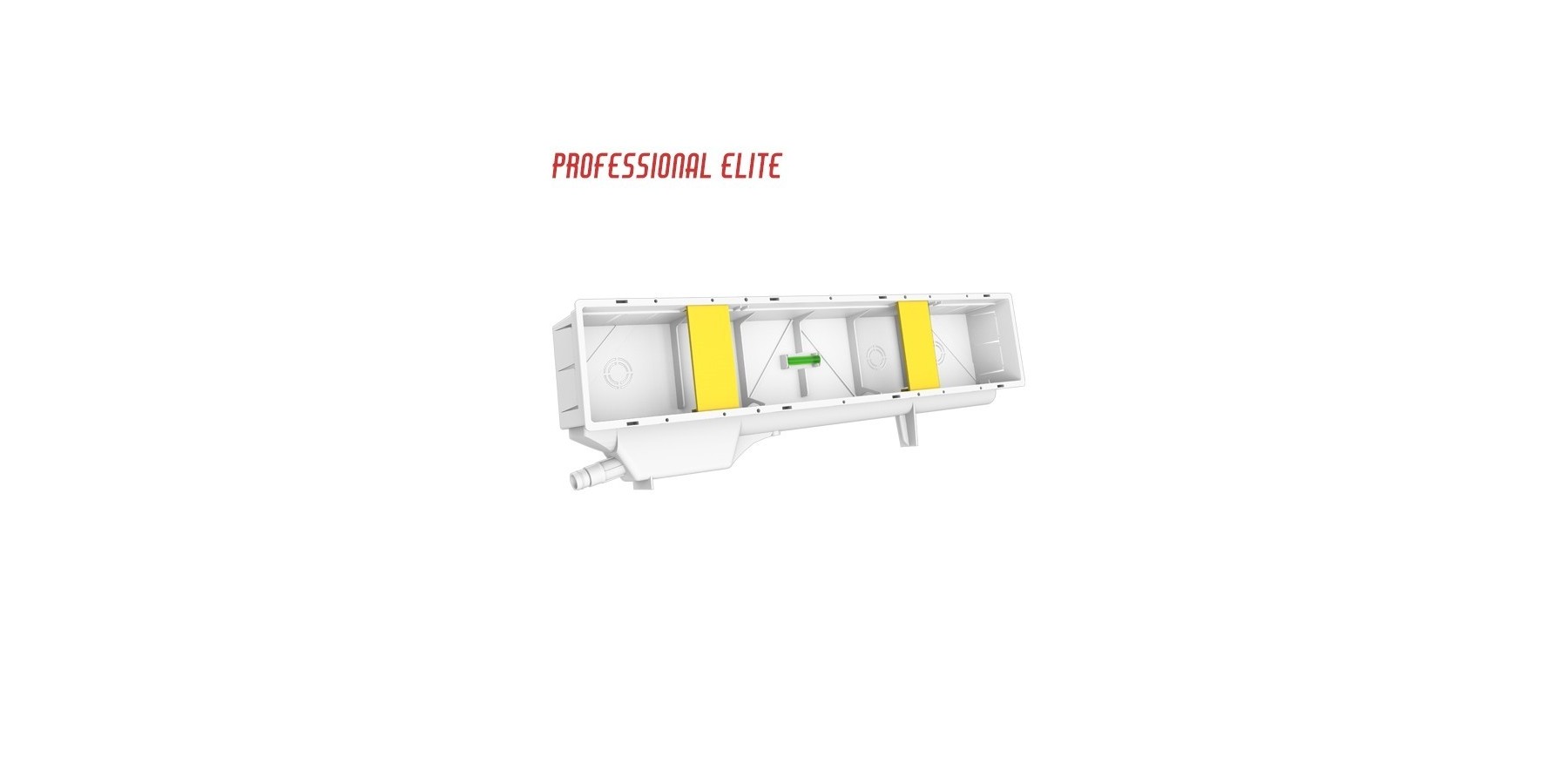 Reversibler Trichterförderer hinten, Schutzgitter, verstellbare Plättchen zur Befestigung der Schablone, integrierte Libelle, eingebauter Siphon mit luftdichtem Deckel, Antikondensationszwischenraum, Schutzpappe gegen Putz