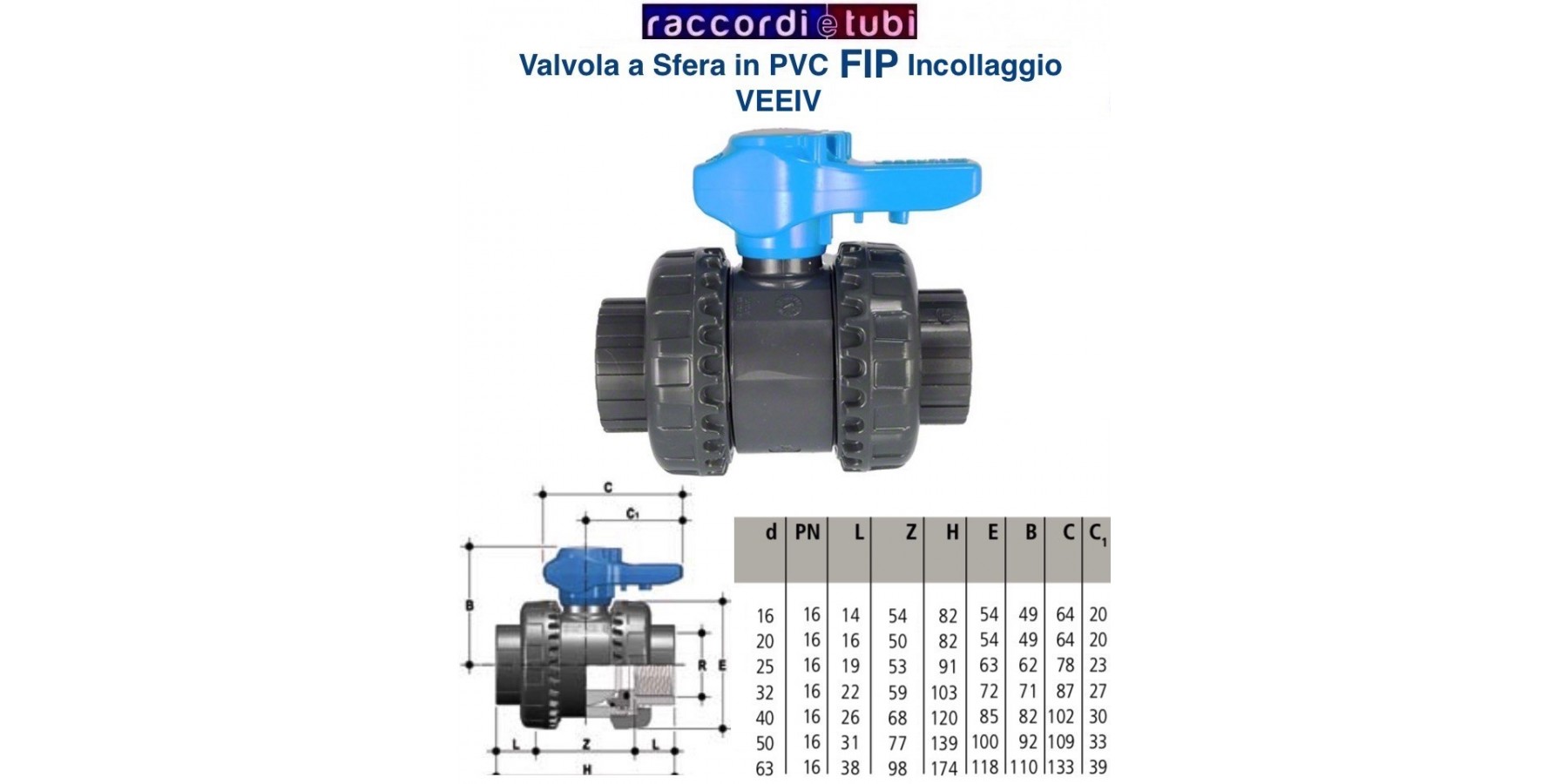 PVC-Kugelventil aus FIP zum Kleben Modell VEEIV