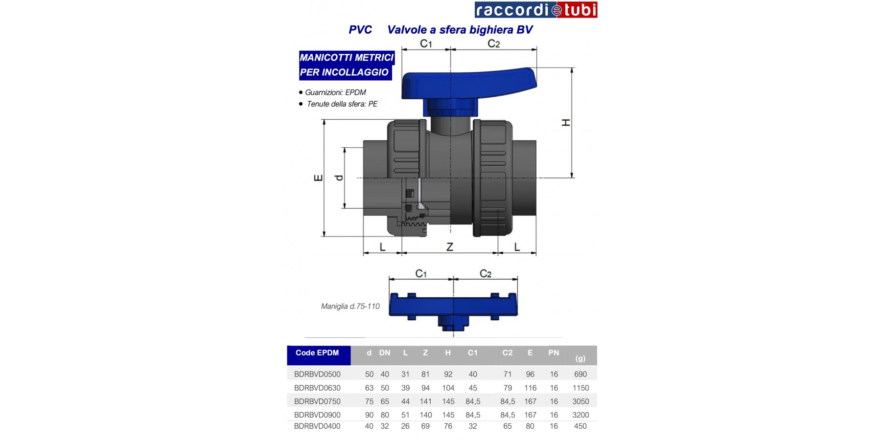 - Verbindung mittels Muffen zum Kleben (ISO, BS, ASTM, JIS), Gewindeverbindungen (BSPP, NPT), HDPE-Muffen oder Flanschverbindung.
