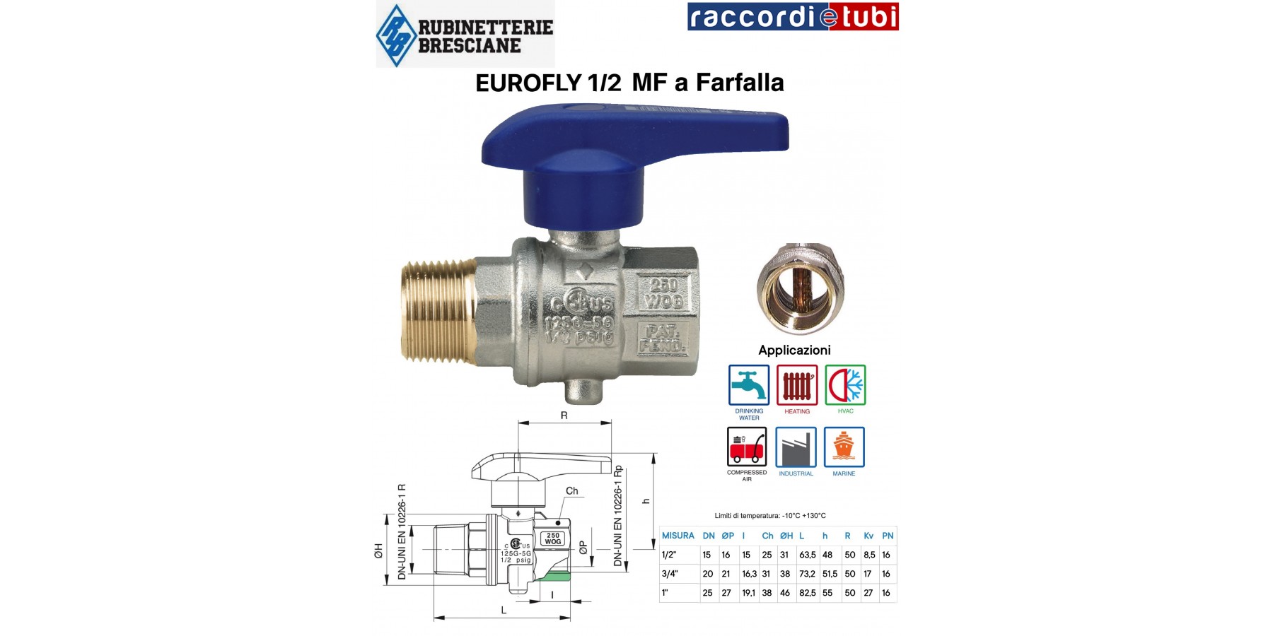 Schmetterlingsventil aus Messing, mit Durchgang M/F, kurzem Hebel und Durchflussregulierungssystem.