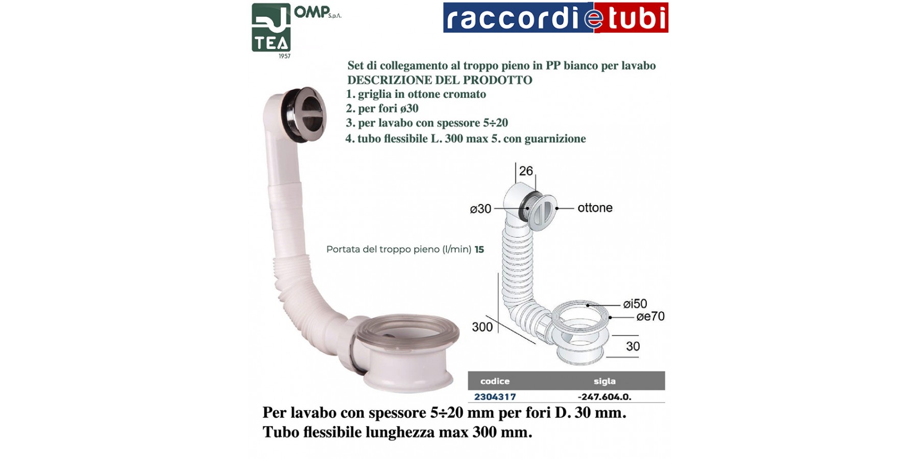 ÜBERLAUFANSCHLUSS-SET AUS PP FÜR WASCHBECKEN MIT MESSINGABDECKUNG.