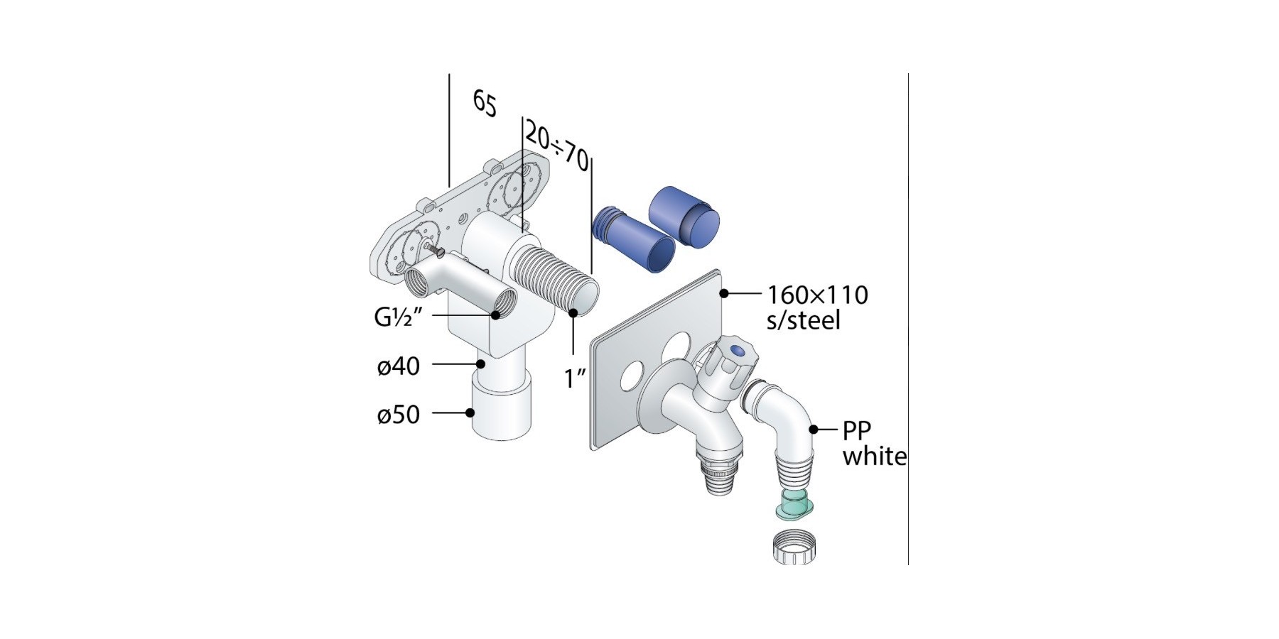 - Weißer PP-Schlauchanschluss