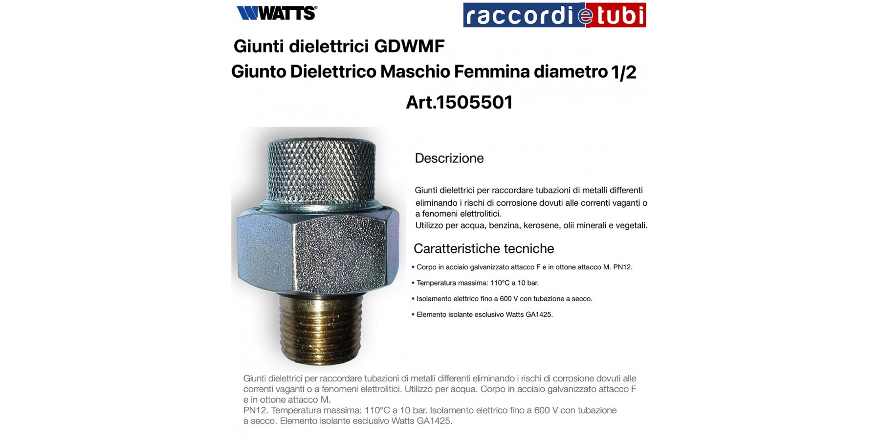 Dielektrische Verbinder zum Anschluss von Rohrleitungen aus verschiedenen Metallen, um Korrosionsrisiken durch Streuströme oder elektrolytische Phänomene zu vermeiden.