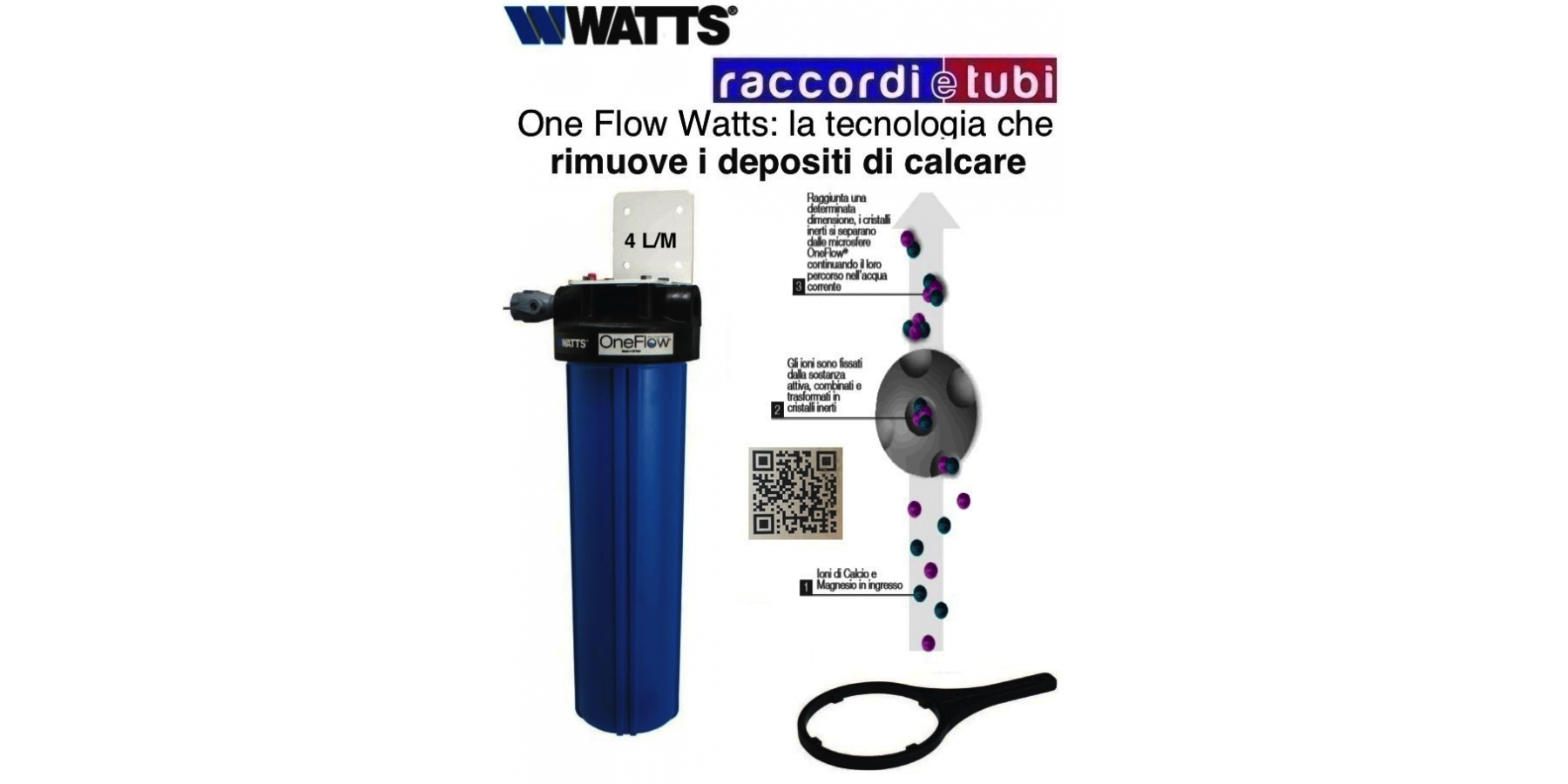 OneFlow® ist ein Kalkschutzsystem, das für Anlagen mit offenem Kreislauf geeignet ist, die Wasser mit den in den Produktdaten beschriebenen chemischen Eigenschaften verwenden, sowie für Anlagen zur Warmwasserbereitung. Die Behandlung ist physikalisch und verwendet eine Technologie der Kristallisation von Calcium- und Magnesiumionen (Template Assisted Crystallization - TAC).