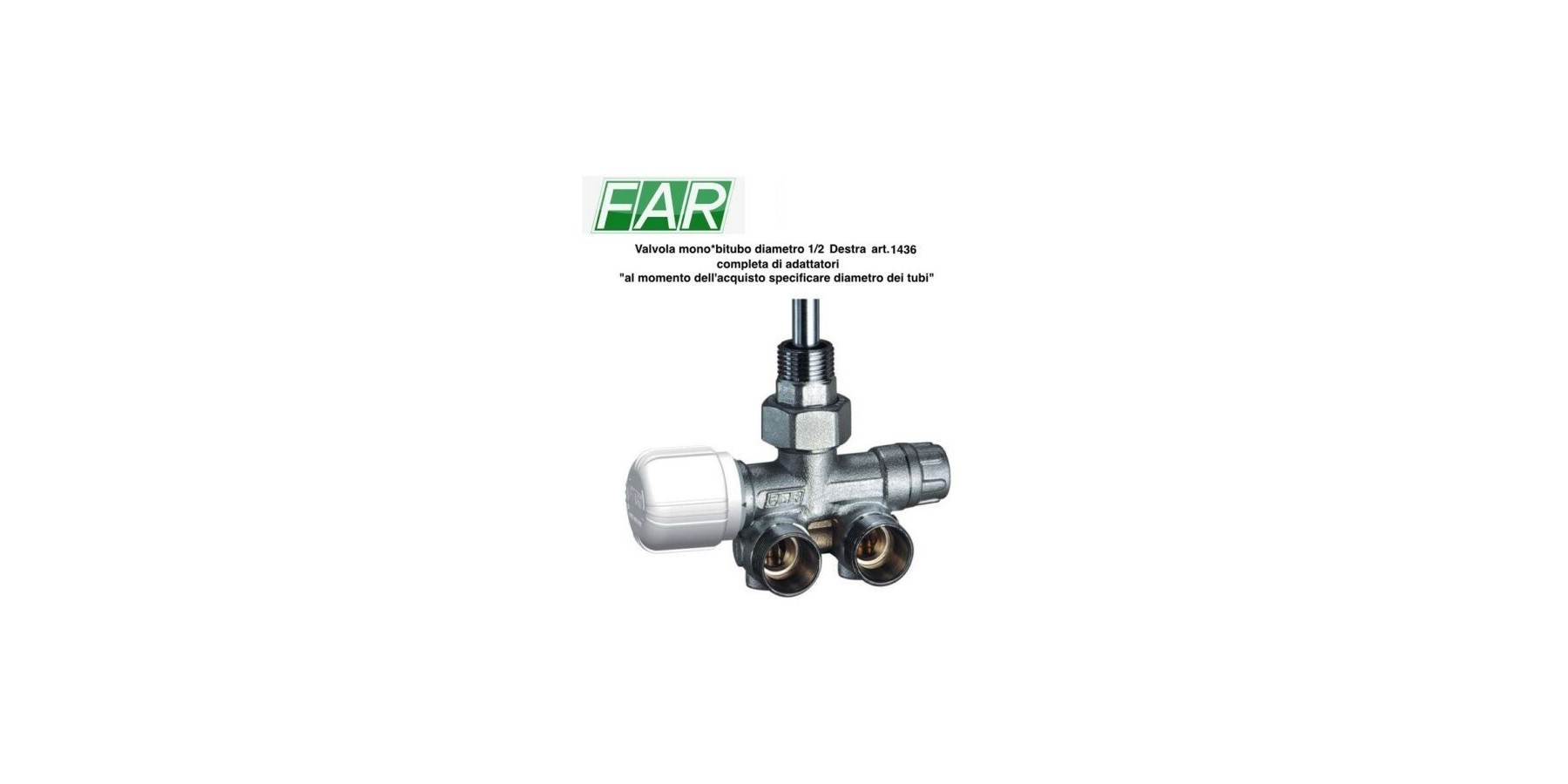 Thermostatisch regelbarer MONO-BITUBO Ventil rechts im Winkel verchromt, komplett mit Stiel und Haube. • Metallsonde 450mm Ø 10mm • Austauschbare Anschlüsse für Kupfer-, Kunststoff- und Mehrschichtrohre • Zentraler Anschluss am Heizkörperkörper • Abstand der Abzweigungen 35mm
