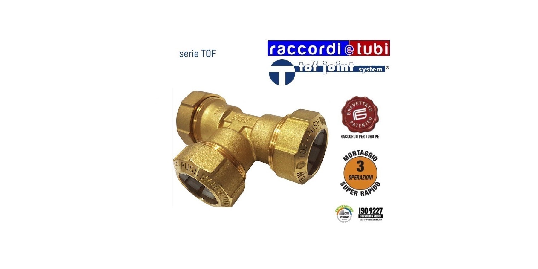 Das TOF Fitting ist als Kompressionsverbindung vom Typ A nach Norm EN1254-3 klassifiziert. Die Gewinde entsprechen UNI ISO 7/1.