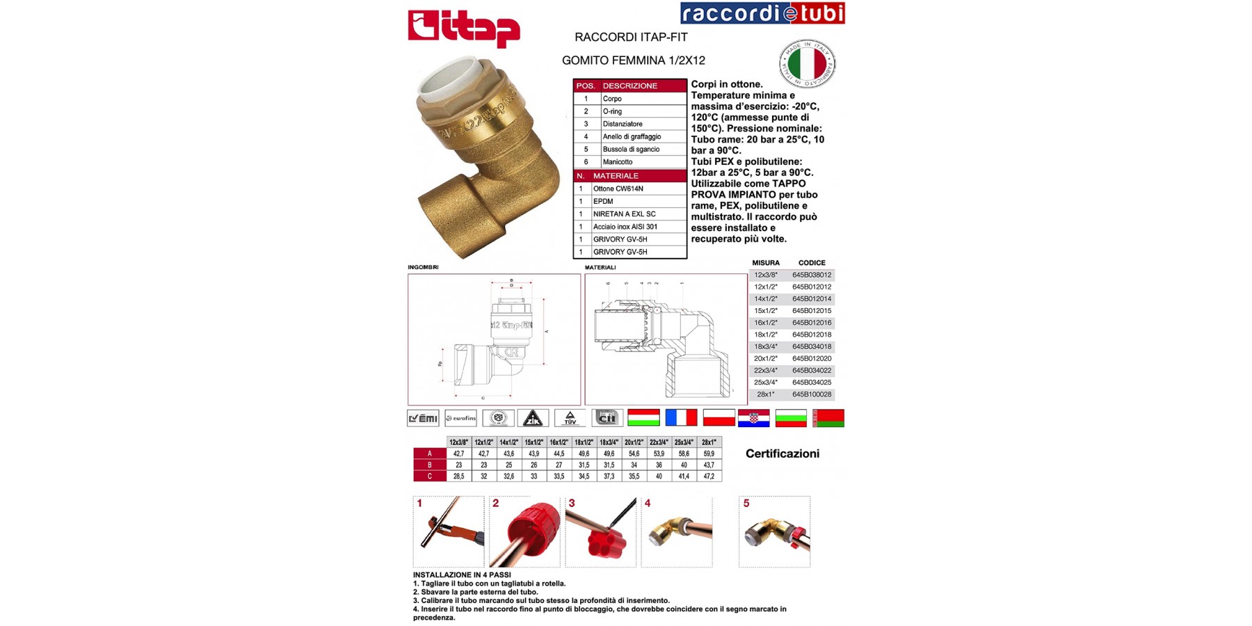 Mutterwinkel 1/2x12 für Kupfer-, PEX-, Polybutylen- und Verbundrohre.