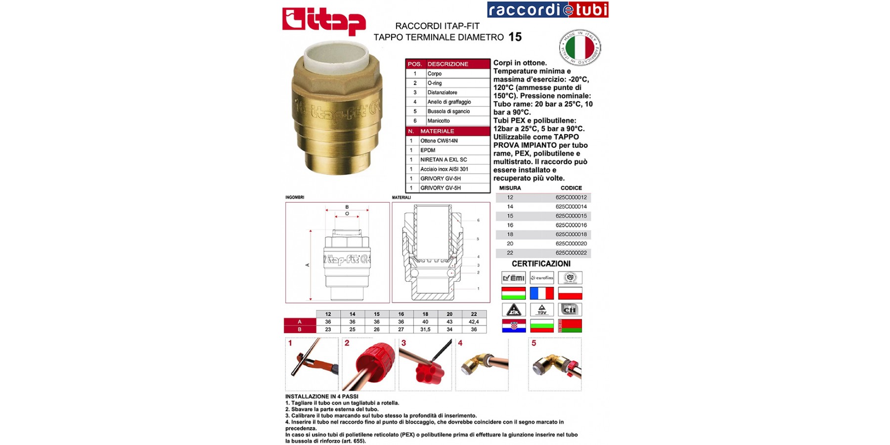Verwendbar als ANLAGENTESTSTOPFEN für Kupfer-, PEX-, Polybutylen- und Mehrschichtrohre.