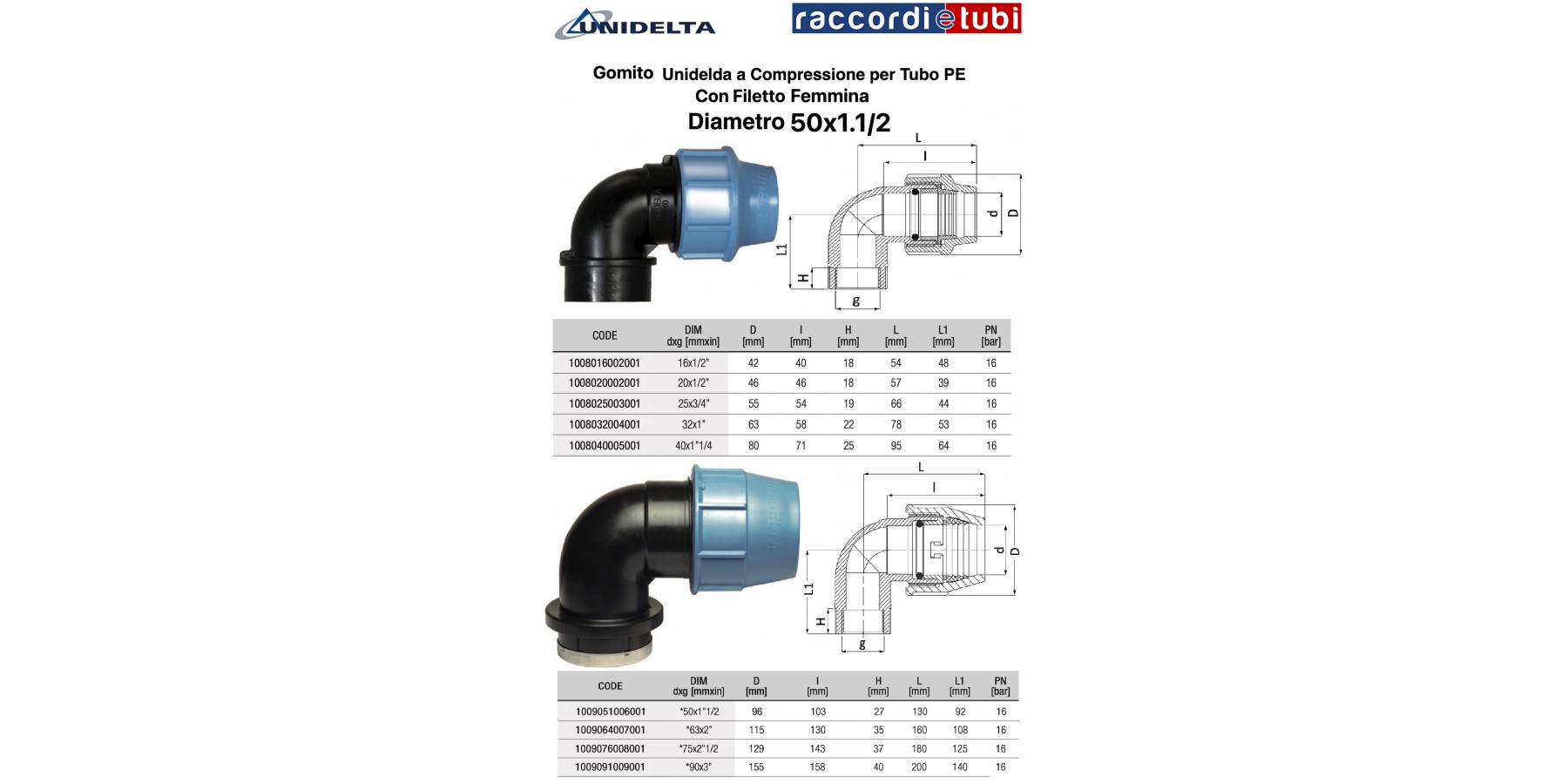 Fitting aus Polypropylen PP von Unidelta für den Transport von Trinkwasser und Druckflüssigkeiten bis zu 16 bar. Der Muffenfitting 1001 aus PP von Unidelta garantiert die perfekte hydraulische Dichtheit bei der Herstellung von Druckverteilungssystemen. Die Unidelta-Reihe ist kompatibel mit allen Rohren aus PEBD, PEHD, PE40, PE80, PE100, hergestellt gemäß den Normen EN 12201, ISO 4427, ISO 14236, ISO 13460, DIN 8074. Der Unidelta Muffenfitting 1001 ist ein spezielles Produkt zum Verbinden von Polyethylen-PP-Rohren mit einem Außendurchmesser zwischen 16 und 110 Millimetern.