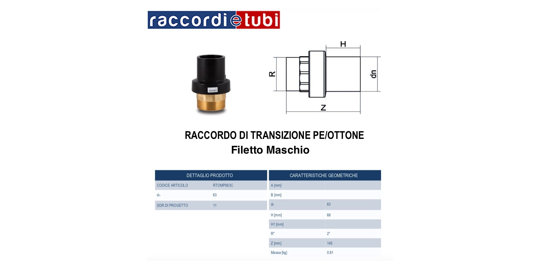 Hauptmerkmale: Familie der Übergangsverschraubungen; PE100 schwarz und Messing; SDR 11; gepresste Ausführung.