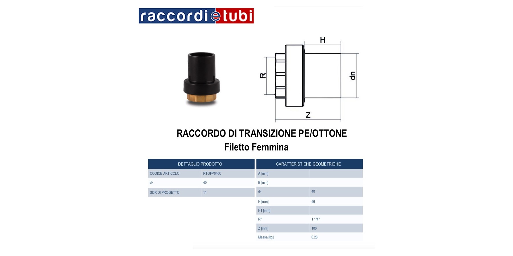 Hauptmerkmale: Familie der Übergangsverschraubungen; PE100 schwarz und Messing; SDR 11; Spritzguss-Ausführung.