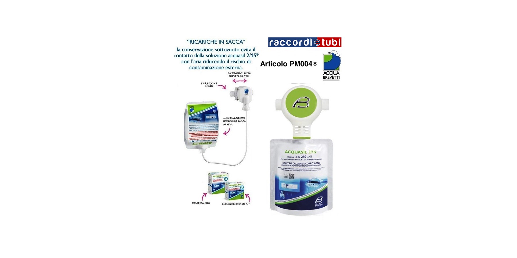 Das Produkt AcquaSIL 2/15® wird in Einwegbeuteln zu 250 g oder 1 kg gehandhabt, die direkt am Pumpenkörper befestigt oder mit dem Fernkit verwendet werden können