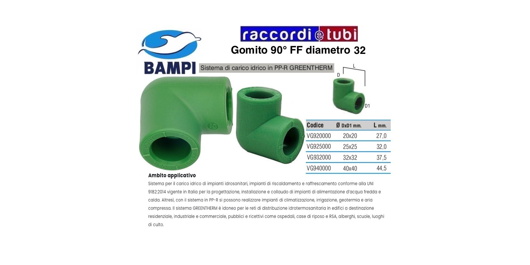 Seit 25 Jahren in der Verteilung von Warm- und Kaltwasser verwendet, bietet das Random-Polypropylen-System GREENTHERM absolute mechanische und physikalische Zuverlässigkeit. Die GREENTHERM-Reihe von Bampi umfasst Durchmesser von 20, 25, 32, 40, 50, 63, 75, 90 und 110 mm mit 4 verschiedenen Rohrtypen, die mit einer einzigen Schweißfittingsreihe kompatibel sind: