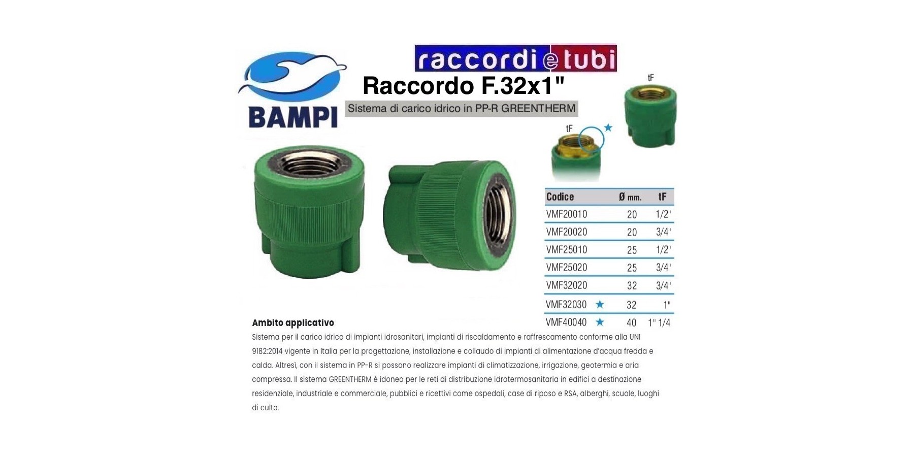 Seit 25 Jahren im Einsatz in der Verteilung von Warm- und Kaltwasser bietet das System aus Random-Polypropylen GREENTHERM mechanisch-physikalische Eigenschaften von absoluter Zuverlässigkeit. Die GREENTHERM-Reihe von Bampi umfasst Durchmesser von 20, 25, 32, 40, 50, 63, 75, 90 und 110 mm mit 4 verschiedenen Rohrtypen, die mit einer einzigen Schweißfitting-Range kompatibel sind: