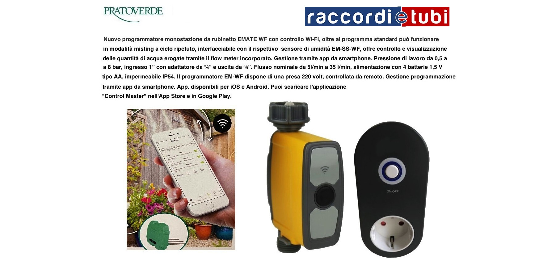- EM-WF (Wi-Fi) ist vorbereitet zur Aufnahme eines drahtlosen Feuchtigkeits-/Temperatursensors zur Steuerung der Bewässerung.