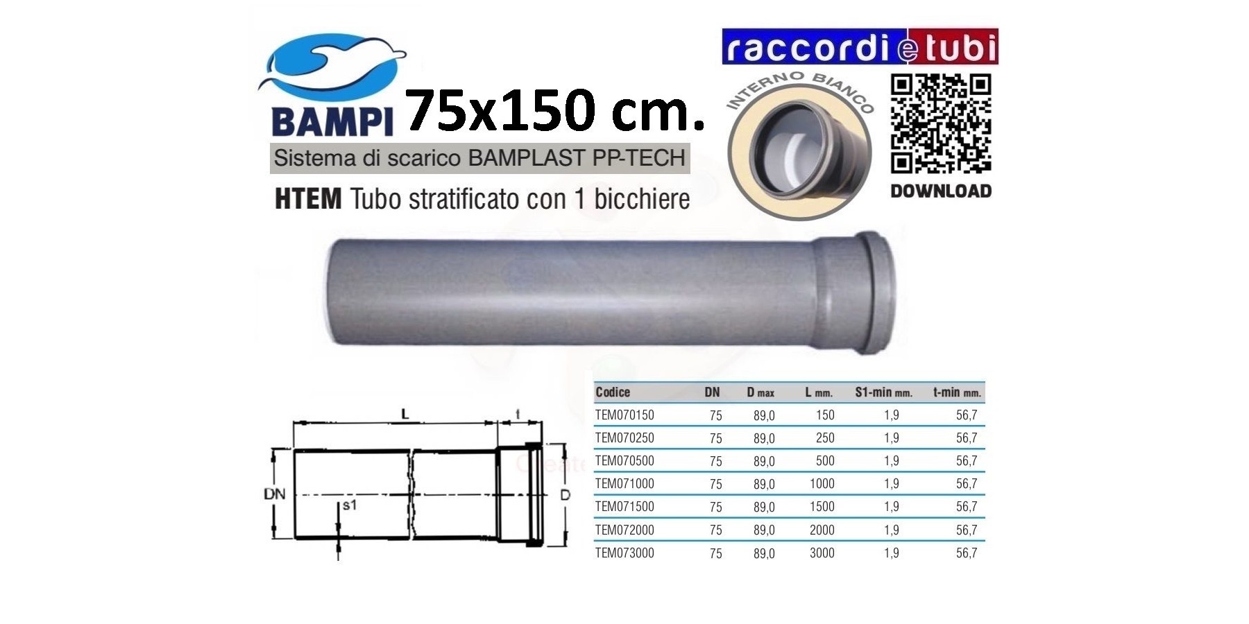 Durchmesser: 32-40-50-75-90-110-125-160 mm.