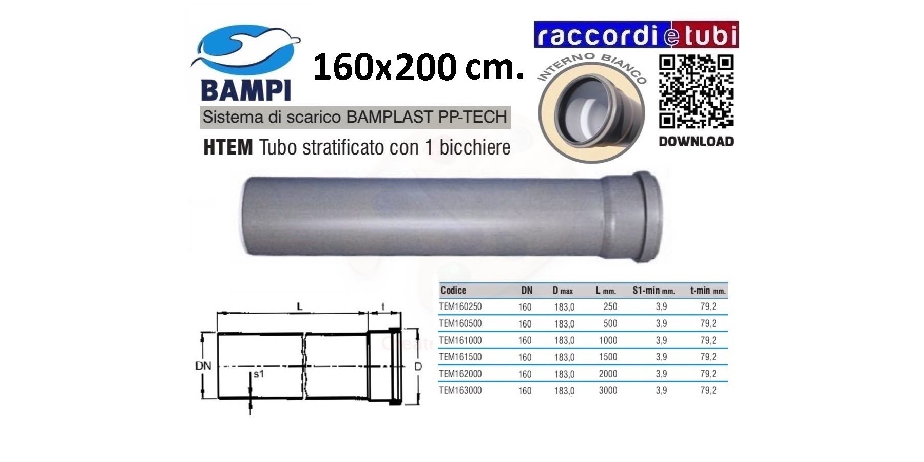 Rohrlängen von 150, 250, 500, 1000, 1500, 2000 und 3000 mm.