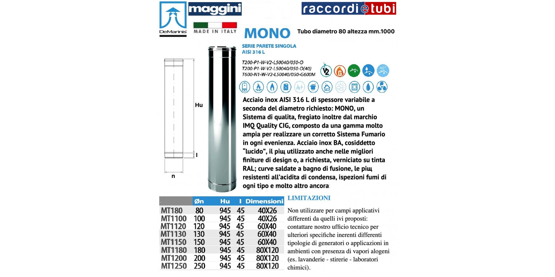 Edelstahl AISI 316 L in variabler Dicke, abhängig vom geforderten Durchmesser: MONO, ein Qualitäts-System, zusätzlich ausgezeichnet mit dem IMQ Quality CIG Markenzeichen, bestehend aus einer sehr umfangreichen Palette zur korrekten Realisierung eines Rauchabzugsystems in jeder Situation. Edelstahl BA, sogenannter „glänzender“ Edelstahl, der auch in den besten Design-Oberflächen verwendet wird oder auf Wunsch in RAL-Farbe lackiert; Schweißbögen im Tauchbad, die am beständigsten gegen Kondensäure sind, Rauchinspektionen jeder Art und vieles mehr: Erkundigen Sie sich bei unseren Büros für weitere Informationen.