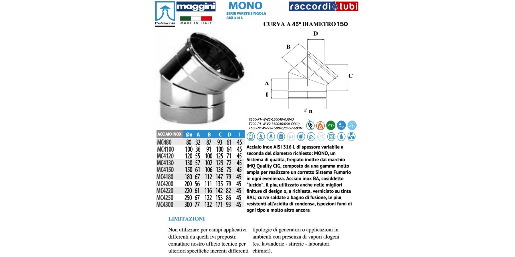 Edelstahl AISI 316 L mit variabler Dicke je nach gefordertem Durchmesser: MONO, ein Qualitätssystem, zusätzlich ausgezeichnet mit dem IMQ Quality CIG Zertifikat, bestehend aus einer sehr breiten Produktpalette zur korrekten Realisierung eines Kamin-Systems für jeden Einsatzfall. Edelstahl BA, sogenannter „glänzender“ Stahl, der auch in besten Designoberflächen am häufigsten verwendet wird oder auf Wunsch lackiert in RAL-Farben; geschweißte Bogen im Tauchschmelzverfahren, besonders widerstandsfähig gegen Kondensäure, Rauchgasinspektionen aller Art und vieles mehr: Fragen Sie unsere Büros für weitere Informationen.