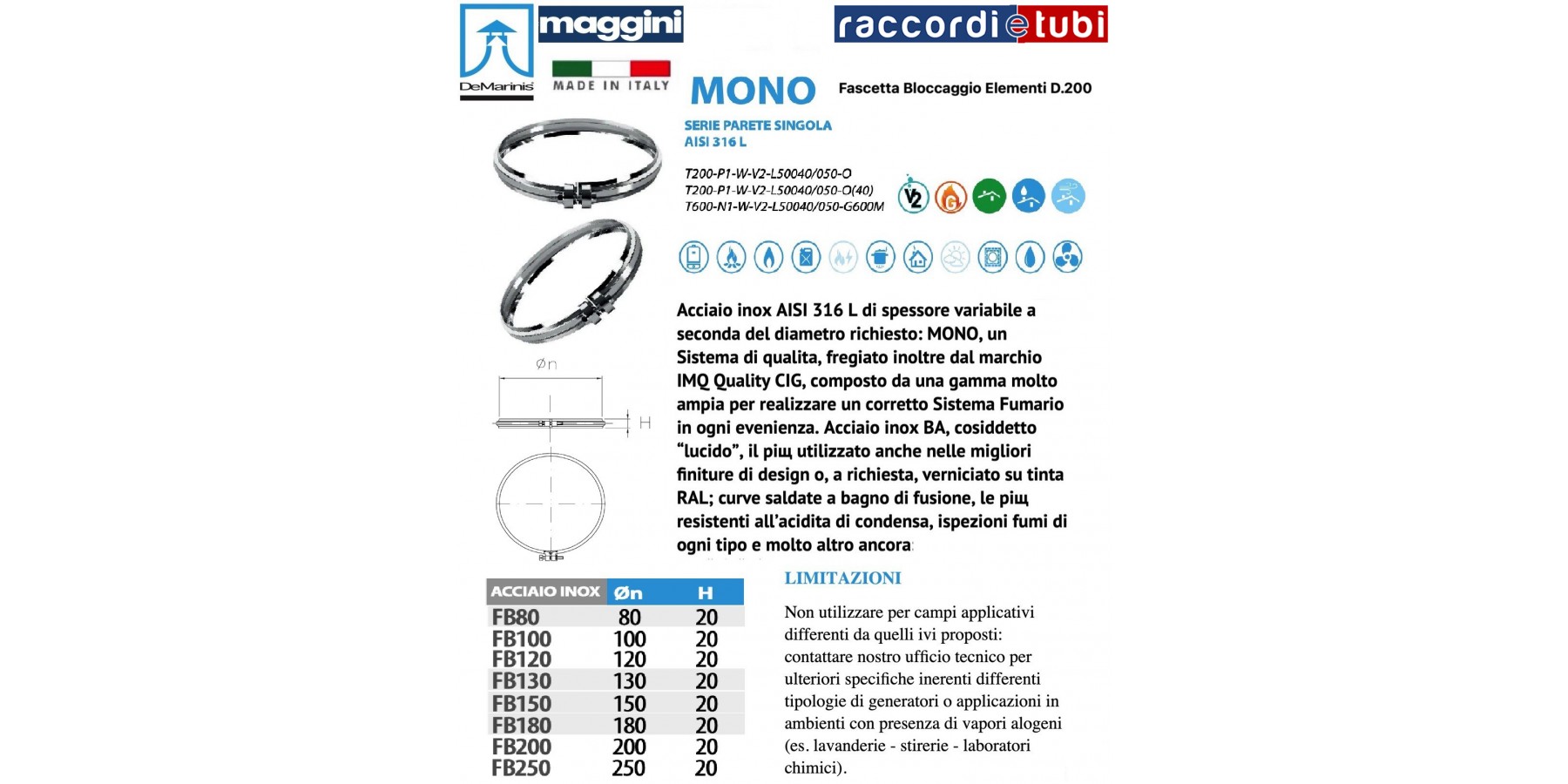 Edelstahl AISI 316 L mit variablem Dickenmaß je nach angeforderten Durchmesser: MONO, ein Qualitätssystem, zudem mit dem Markenzeichen IMQ Quality CIG ausgezeichnet, bestehend aus einer sehr umfangreichen Produktpalette zur Errichtung eines korrekten Rauchrohrsystems für jede Situation. Edelstahl BA, sogenannter „glatter“ Stahl, der in den besten Designoberflächen am häufigsten verwendet wird oder auf Wunsch in RAL-Farbe lackiert; geschweißte Biegungen im Schmelzbad, die am widerstandsfähigsten gegen Kondenssäure sind, Rauchinspektionen aller Art und vieles mehr: Bitte kontaktieren Sie unsere Büros für weitere Informationen.