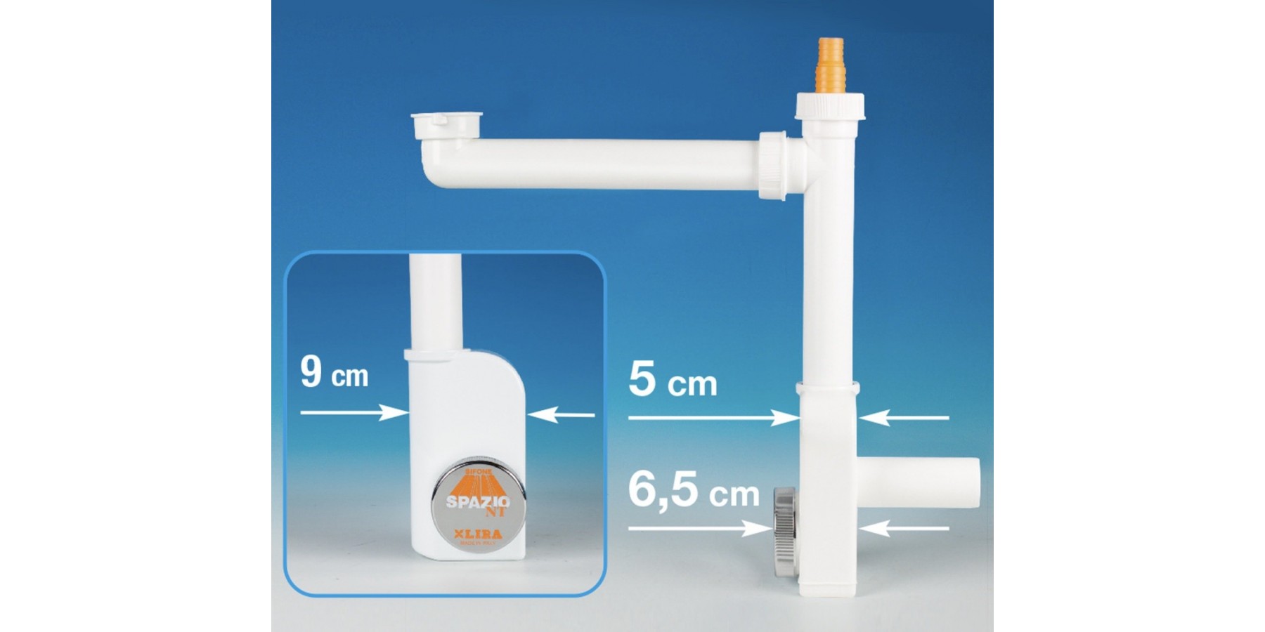 Inspektionsfähiger platzsparender Siphon für Einbeckenspülen