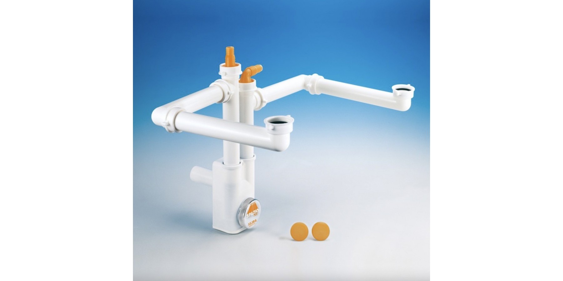 Platzsparender Siphon für Doppelbecken mit einem Durchmesser von 1.1/2x40