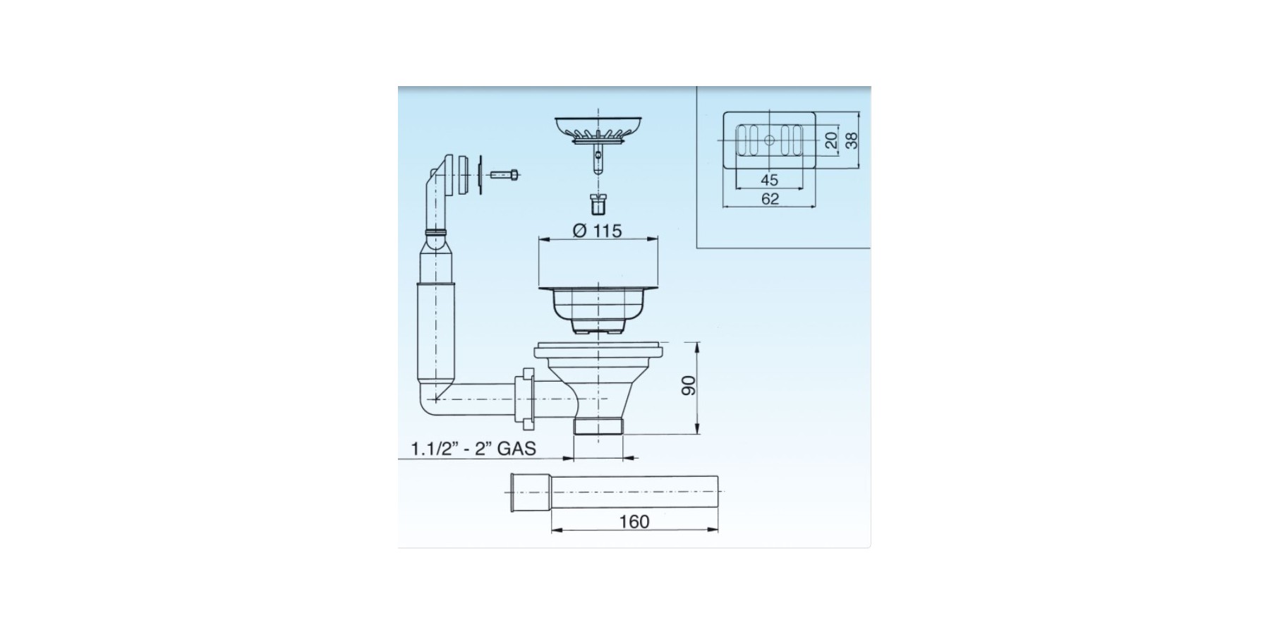 Sieb-Ablaufgarnitur für Spülen aus Edelstahl, synthetischen Materialien und Keramik mit Ablaufloch Ø 90.