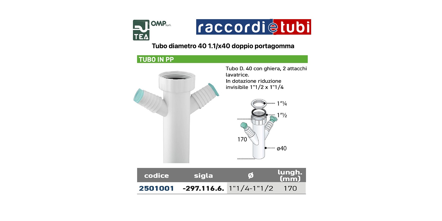 ROHR AUS PP 11/2''x40 MIT 2 SCHLAUCHHALTERN FÜR WASCHMASCHINEN-/GESCHIRRSPÜLERANSCHLUSS