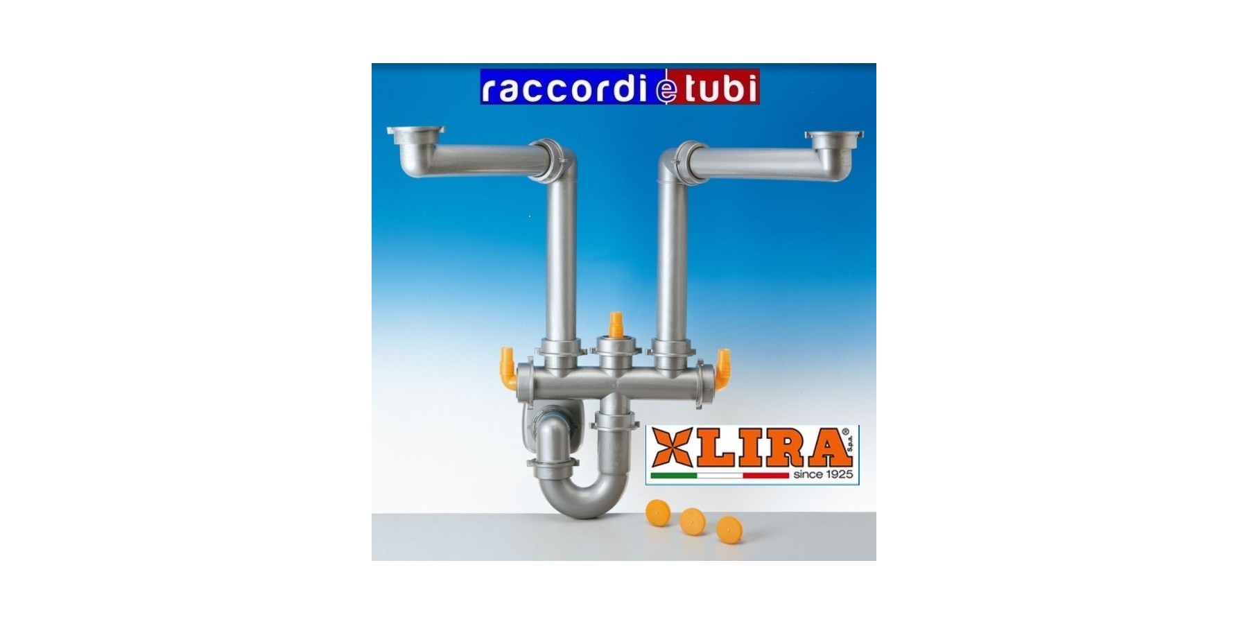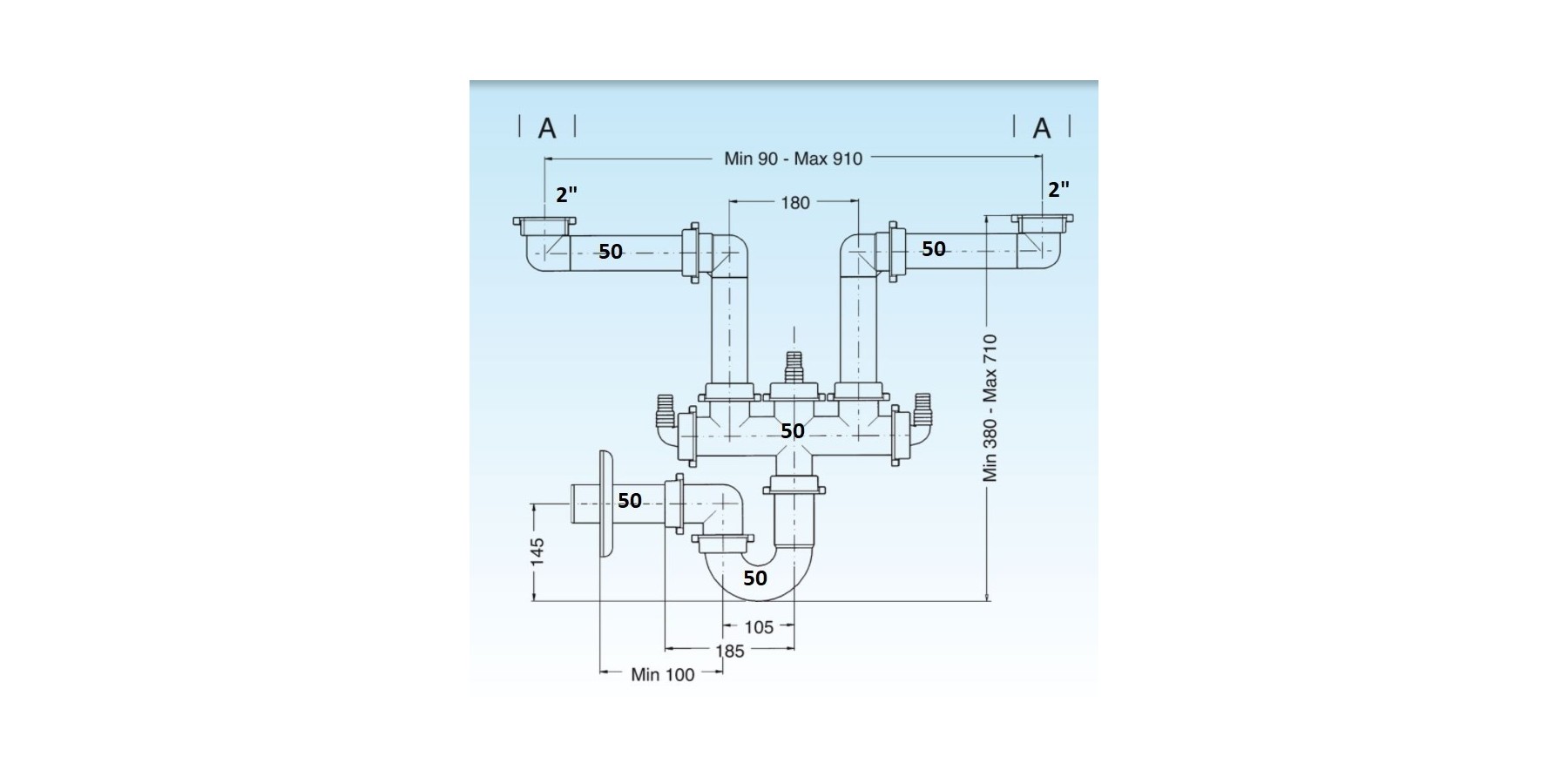 Platzsparender Sifon für industrielle Spülen mit zwei Becken Durchmesser 2"x50