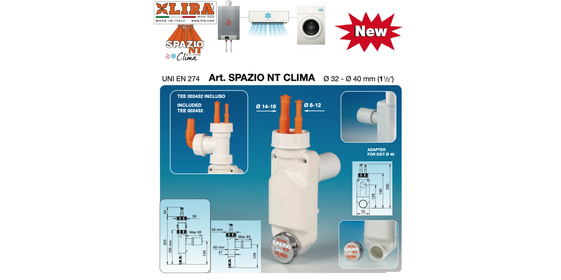 SIFON RAUM FÜR WASCHMASCHINE/GESCHIRRSPÜLER/KESSEL/KLIMAGERÄTE DURCHMESSER 32/40 1.1/2 A.8500.01