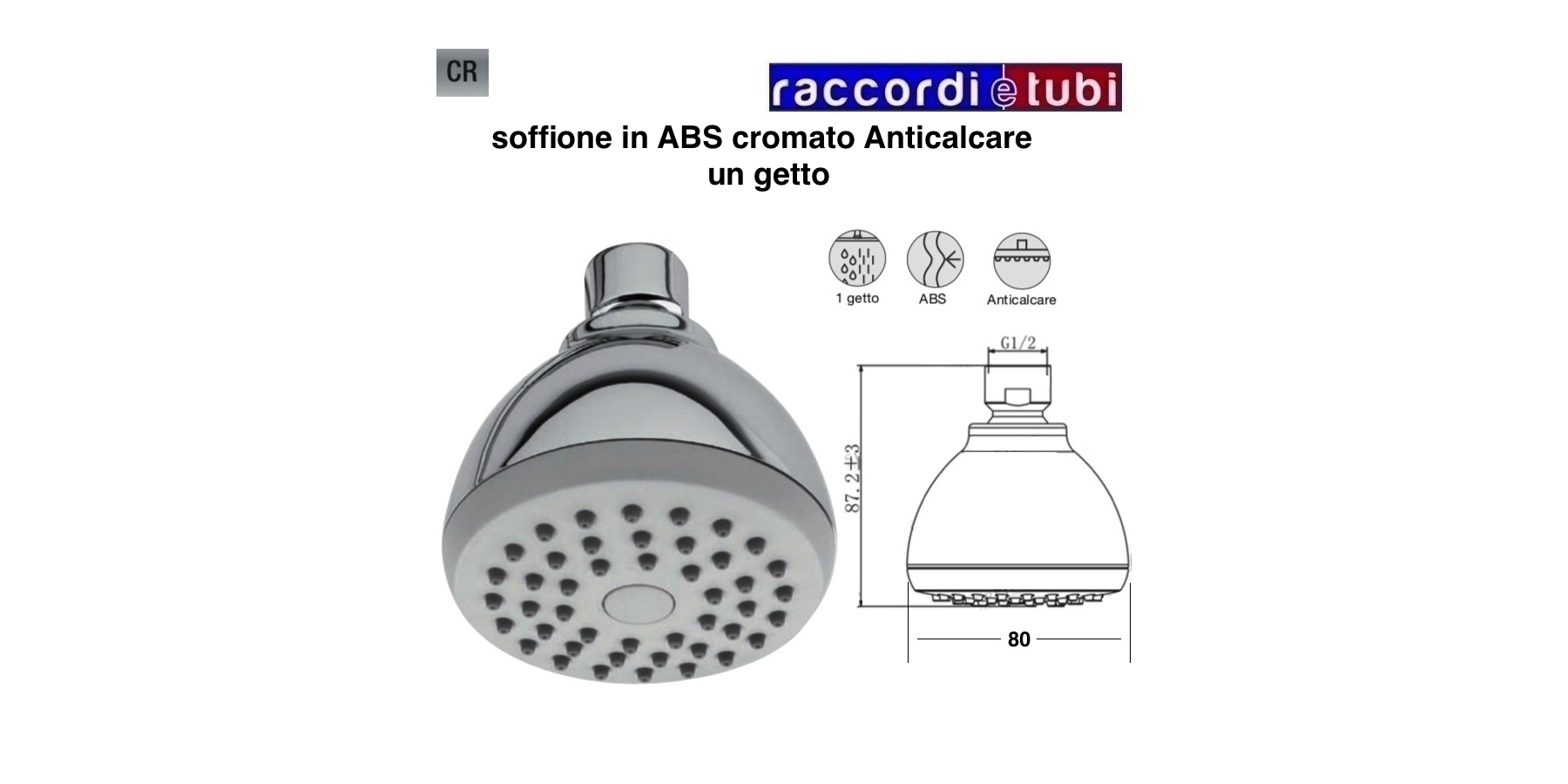 DUSCHKOPF AUS VERCHROMTEM ABS RIMINI 1 FUNKTION