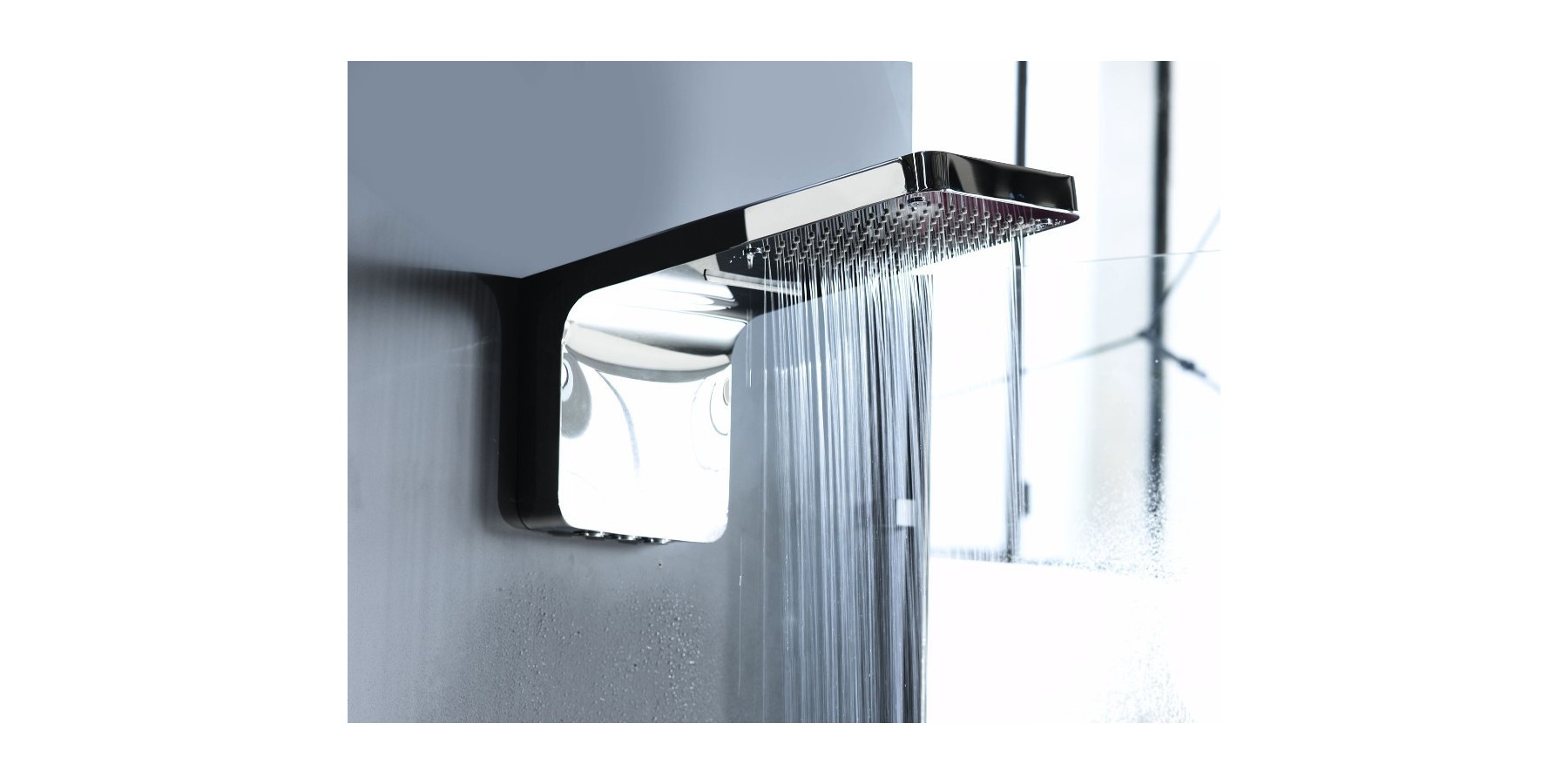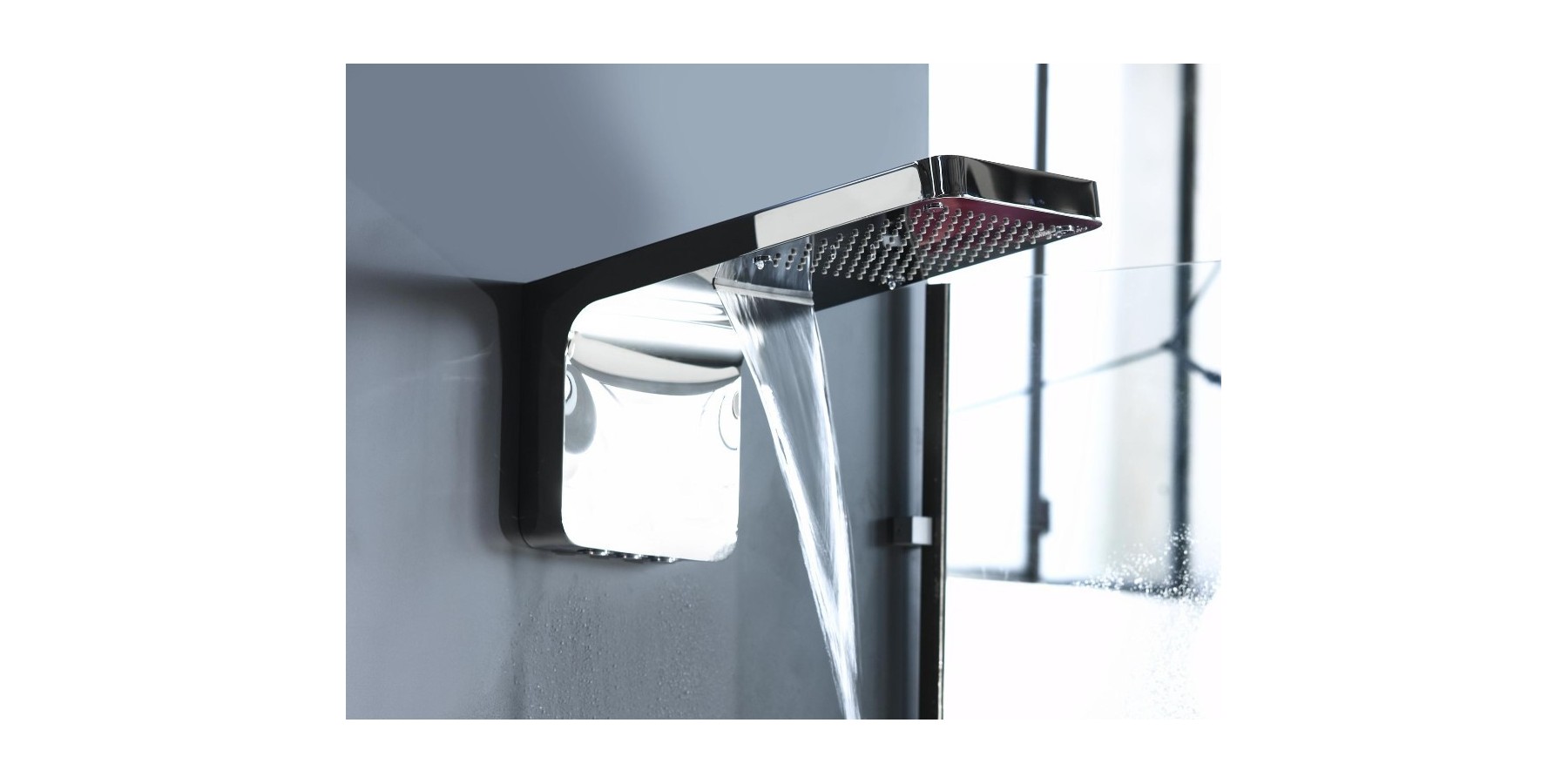 WANDDUSCHKOPF AUS EDELSTAHL MIT WASSERFALL UND NEBELFUNKTION