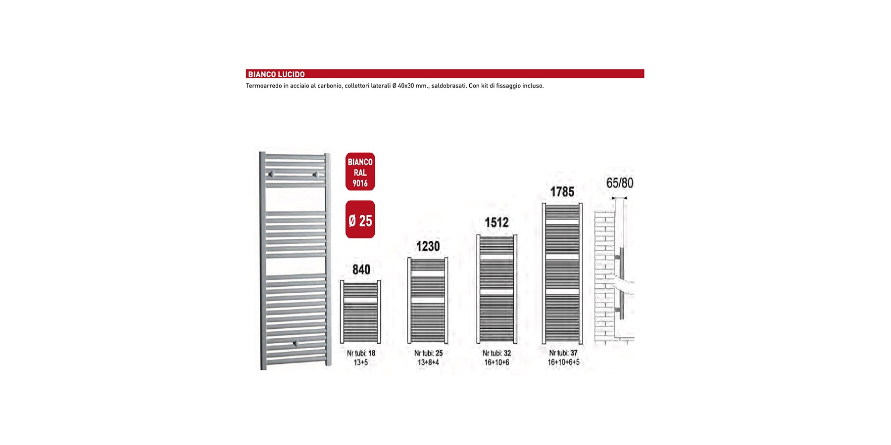 Die Heizkörper der Lazzarini Serie Roma/Giada/Acqua aus Kohlenstoffstahl mit seitlichen Kollektoren in D-Form 40x30 mm und einem horizontalen Rohr mit 25 mm Durchmesser, hartgelötet.