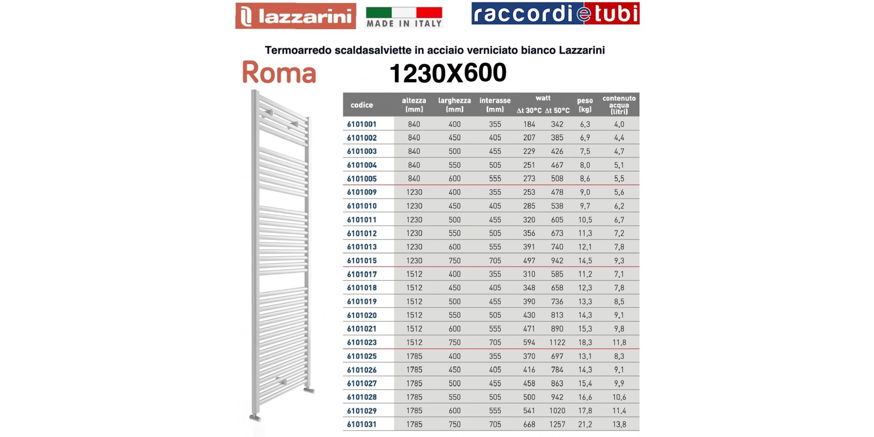 Die Lazzarini Heizkörper der Serien Roma/Giada/Acqua bestehen aus Kohlenstoffstahl mit seitlichen Sammelrohren in D-Form 40x30 mm und einem horizontalen Rohr mit einem Durchmesser von 25 mm, das hartgelötet ist.