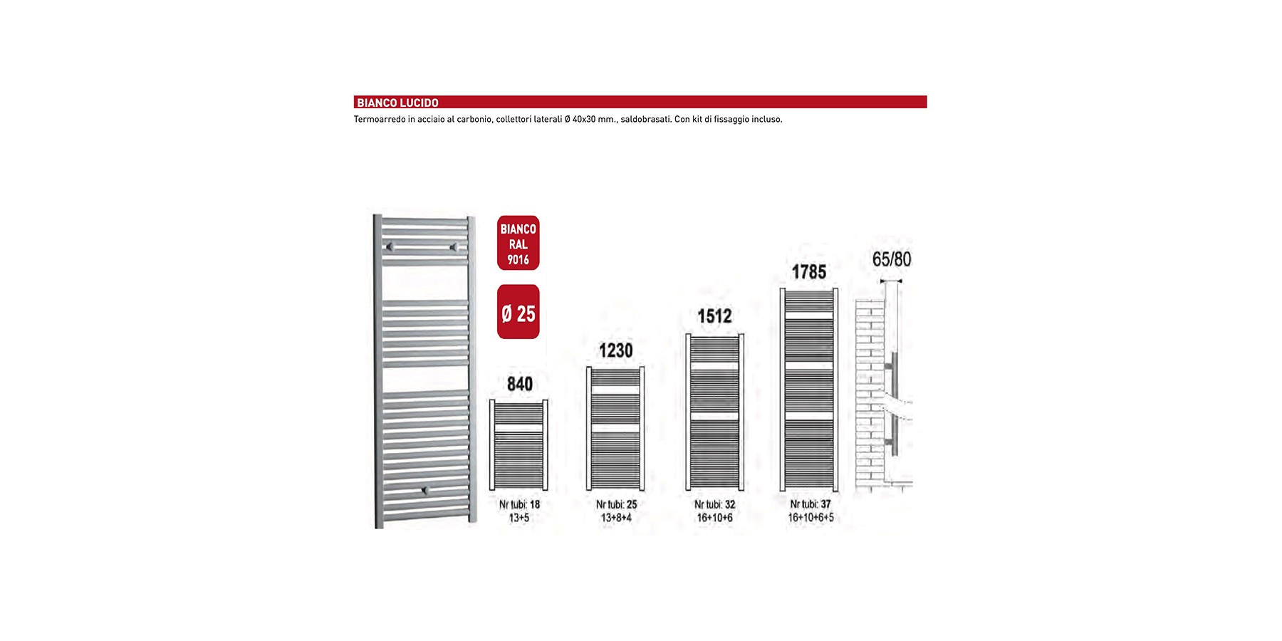 Die Lazzarini Heizkörper der Serien Roma/Giada/Acqua bestehen aus Kohlenstoffstahl mit seitlichen Sammlern in D-Form 40x30 mm und einem horizontalen Rohr mit einem Durchmesser von 25 mm, das geschweißt ist.
