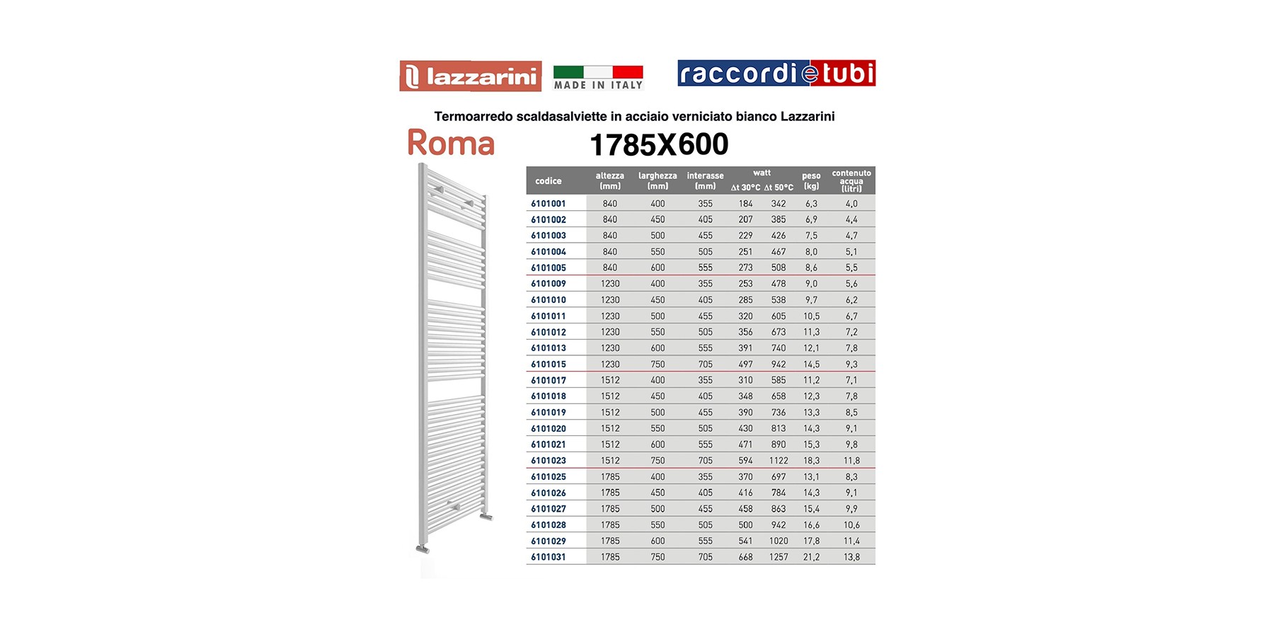 Die Lazzarini Heizkörper der Serien Roma/Giada/Acqua bestehen aus Kohlenstoffstahl mit seitlichen Kollektoren in D-Form 40x30 mm und einem horizontalen Rohr mit 25 mm Durchmesser, das autogen gelötet ist.