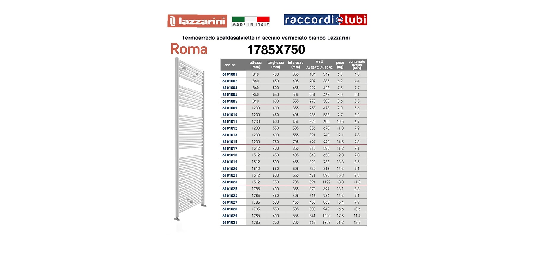 Die Lazzarini Heizkörper der Serien Roma/Giada/Acqua bestehen aus Kohlenstoffstahl mit seitlichen Kollektoren in D-Form 40x30 mm und einem horizontalen Rohr mit einem Durchmesser von 25 mm, das hartgelötet ist.
