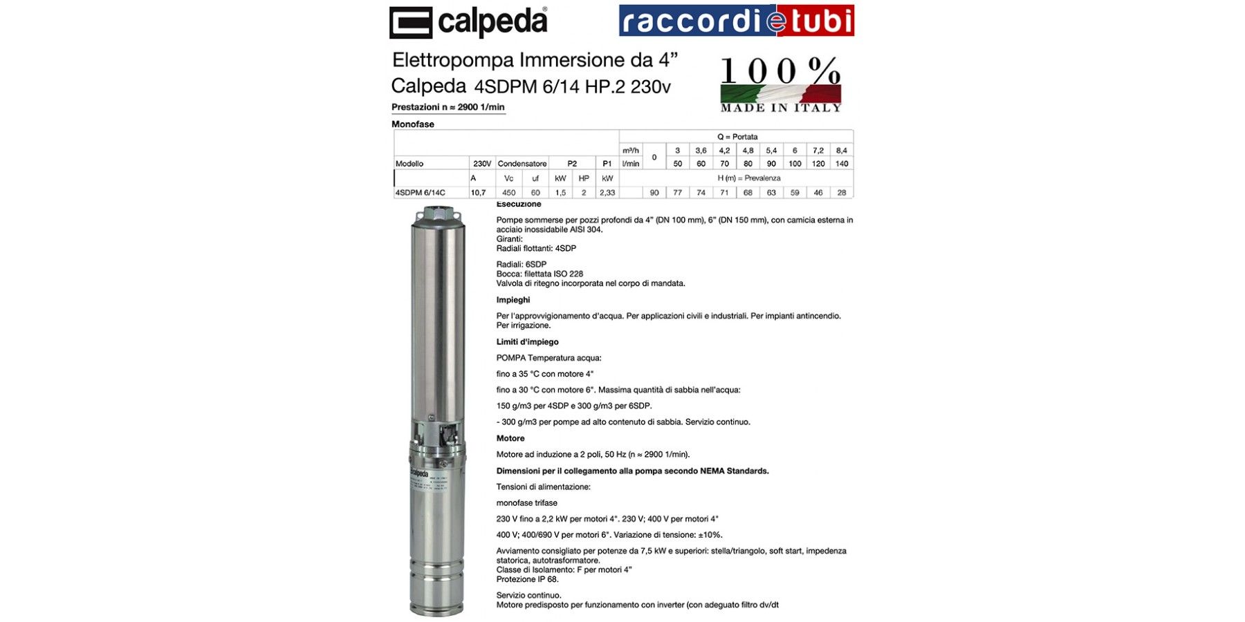 - Einphasen 230 V bis 2,2 kW für 4”-Motoren. - Dreiphasen 230 V; 400 V für 4”-Motoren.