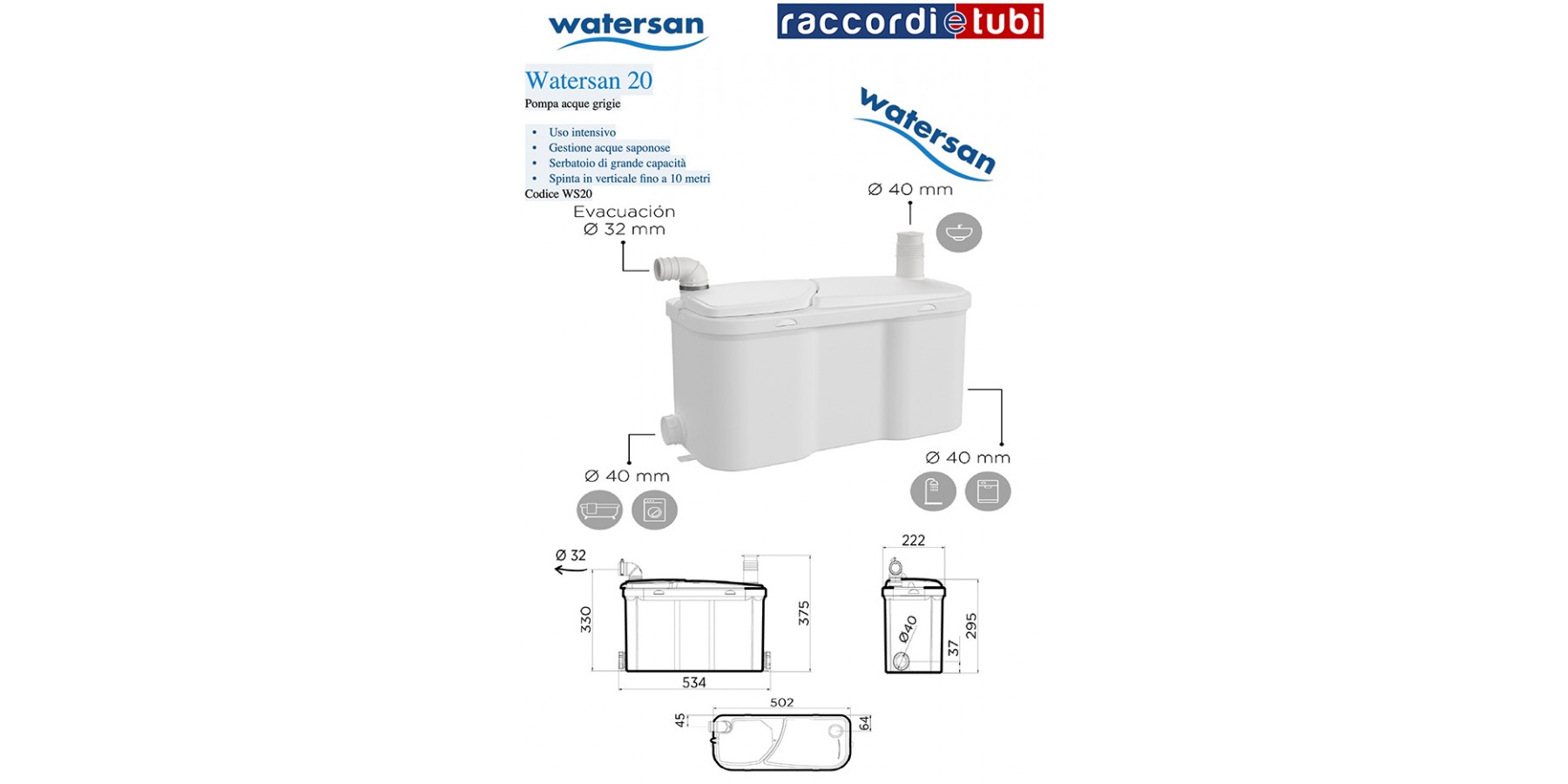 - Seitliche Eingänge: 2 x Ø 40 mm