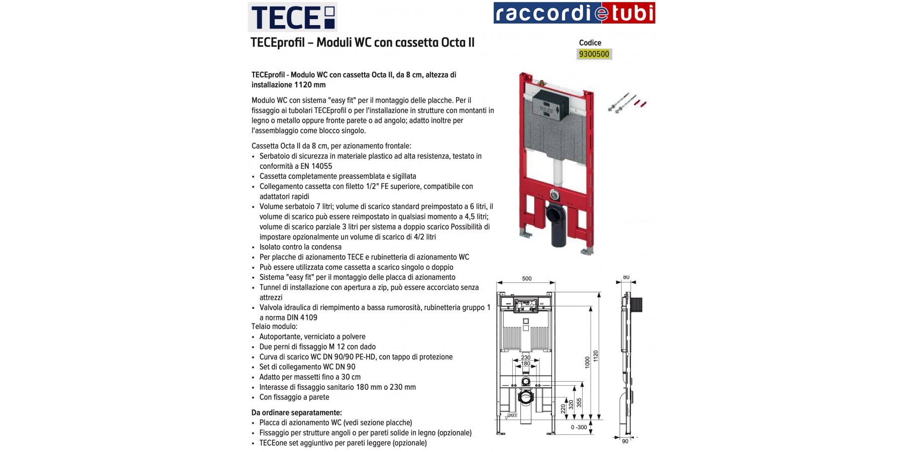 TECEprofil – WC-Modul mit Octa II Spülkasten, 8 cm, Montagehöhe
