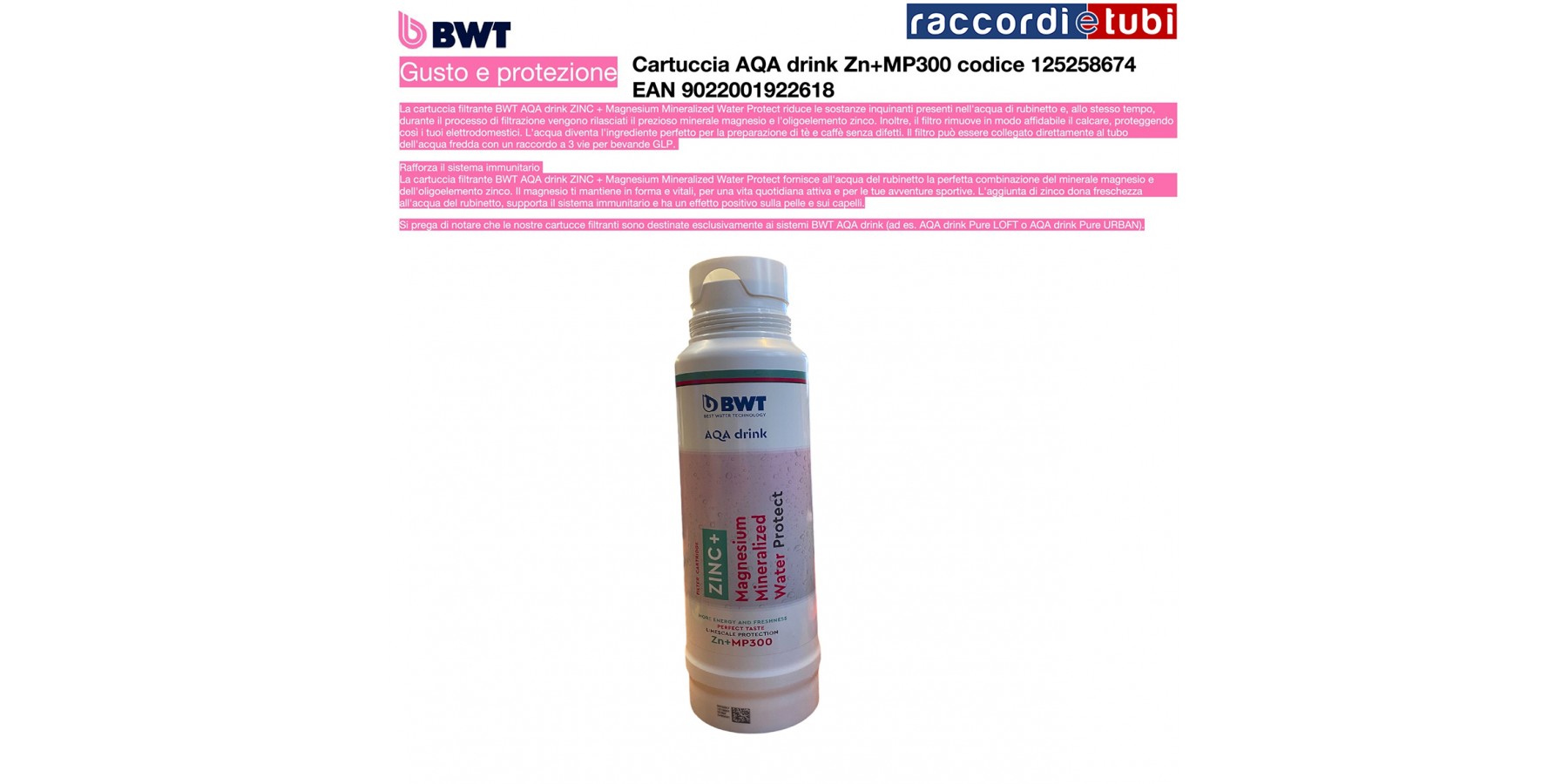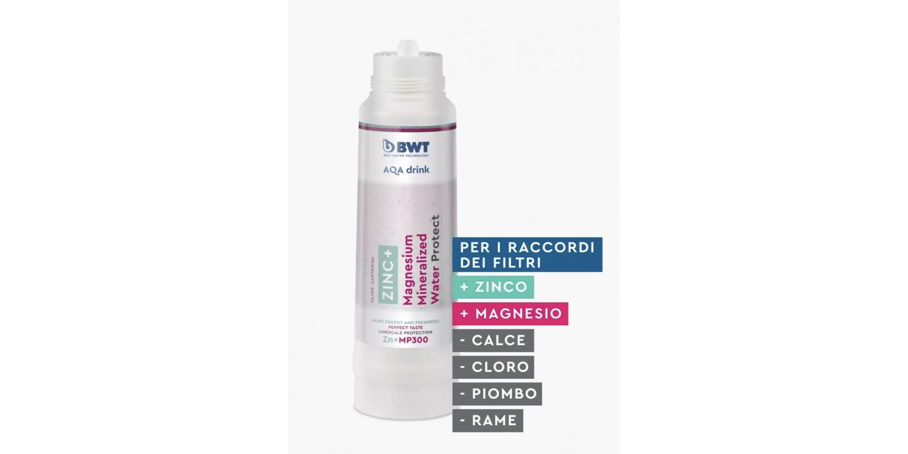 Die Filterpatrone BWT AQA drink ZINC + Magnesium Mineralized Water Protect liefert dem Leitungswasser die perfekte Kombination aus dem Mineral Magnesium und dem Spurenelement Zink. Magnesium hält Sie fit und vital für ein aktives Leben und Ihre sportlichen Abenteuer. Die Zugabe von Zink verleiht dem Leitungswasser Frische, unterstützt das Immunsystem und wirkt sich positiv auf Haut und Haar aus.