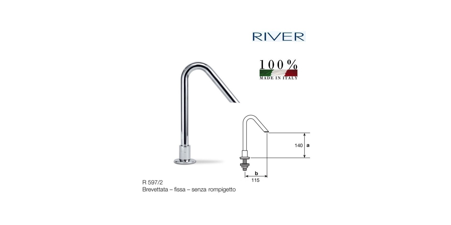 Patentiert – Ausgabemundstück ohne Strahlregler für Handwaschbecken – Messing poliert und verchromt – Anschluss Ø 1/2” – Rosette Ø 50 – Bohrung 21 mm – eingebauter Durchflussreduzierer auf 7 Liter/Minute, leicht inspizierbar