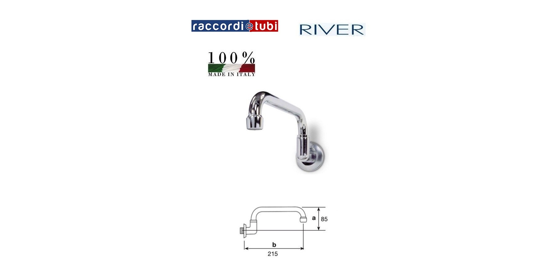 Hoch schwenkbare Wandauslaufbüchse – verchromtes und poliertes Messing – Auslauflänge 180 mm