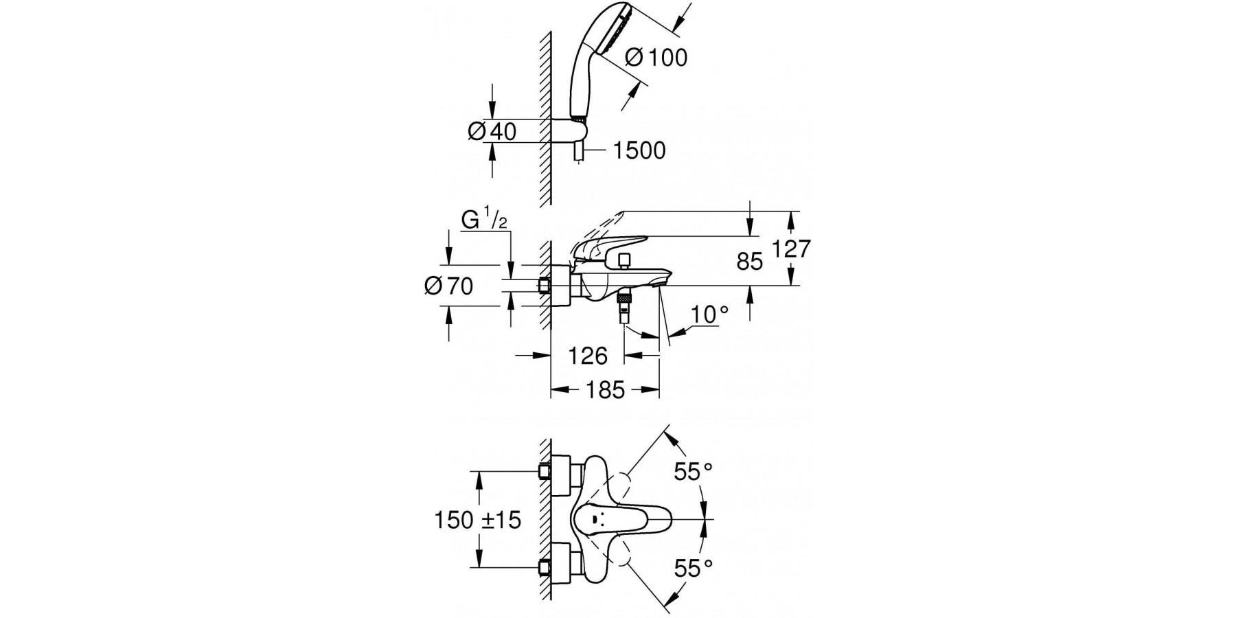 Grohe 2372930A Eurostyle Wandmischer für Badewanne/Dusche - Chrom