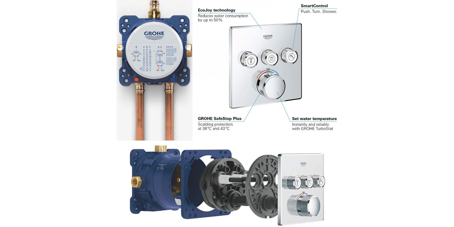 - Montage am Einbaukörper GROHE Rapido SmartBox 35 600 000, nicht enthalten, separat bestellbar
