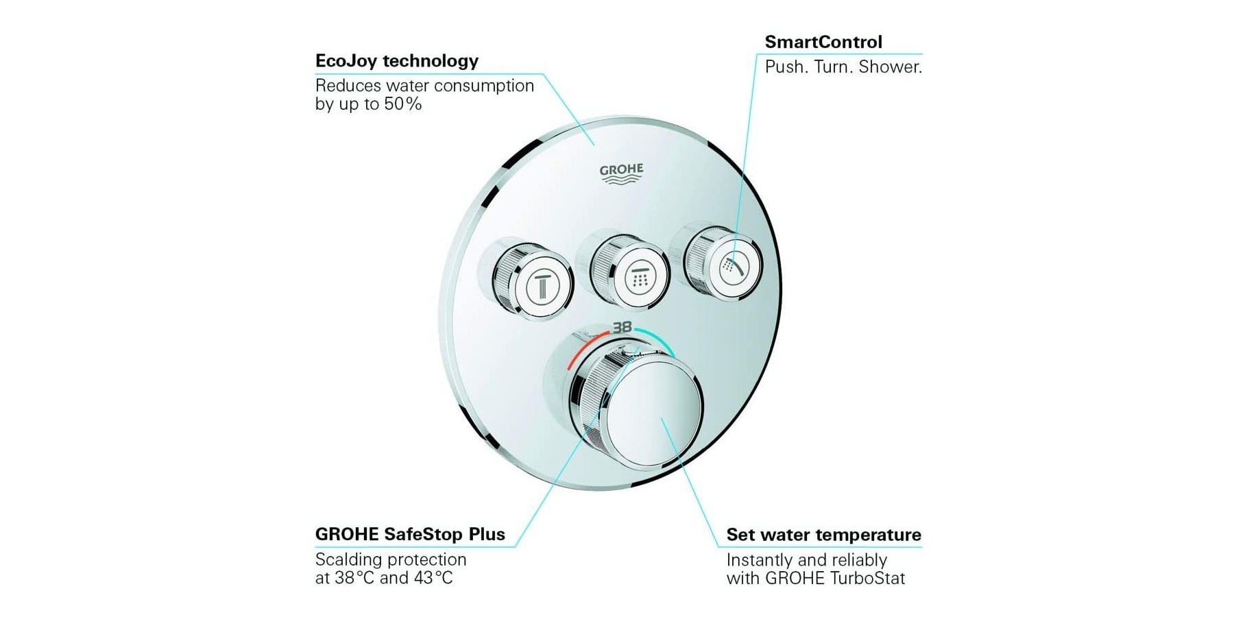 - GROHE SafeStop Plus optionaler Temperatur-Stopp bei 43°C oder 46°C