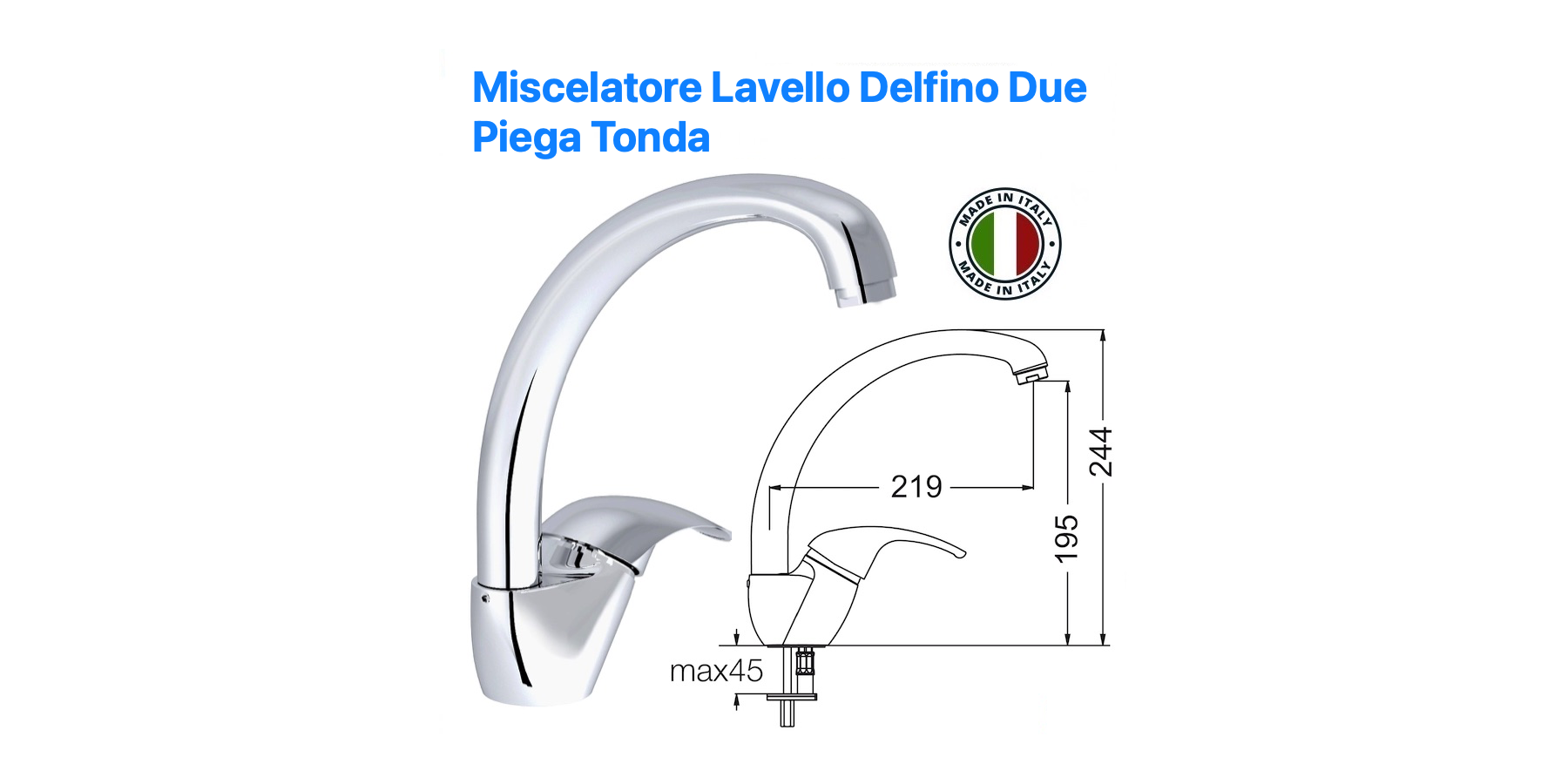 MISCHER WASCHBECKEN DESIA RUNDER BIEGUNG AUS VERCHROMTEM MESSING