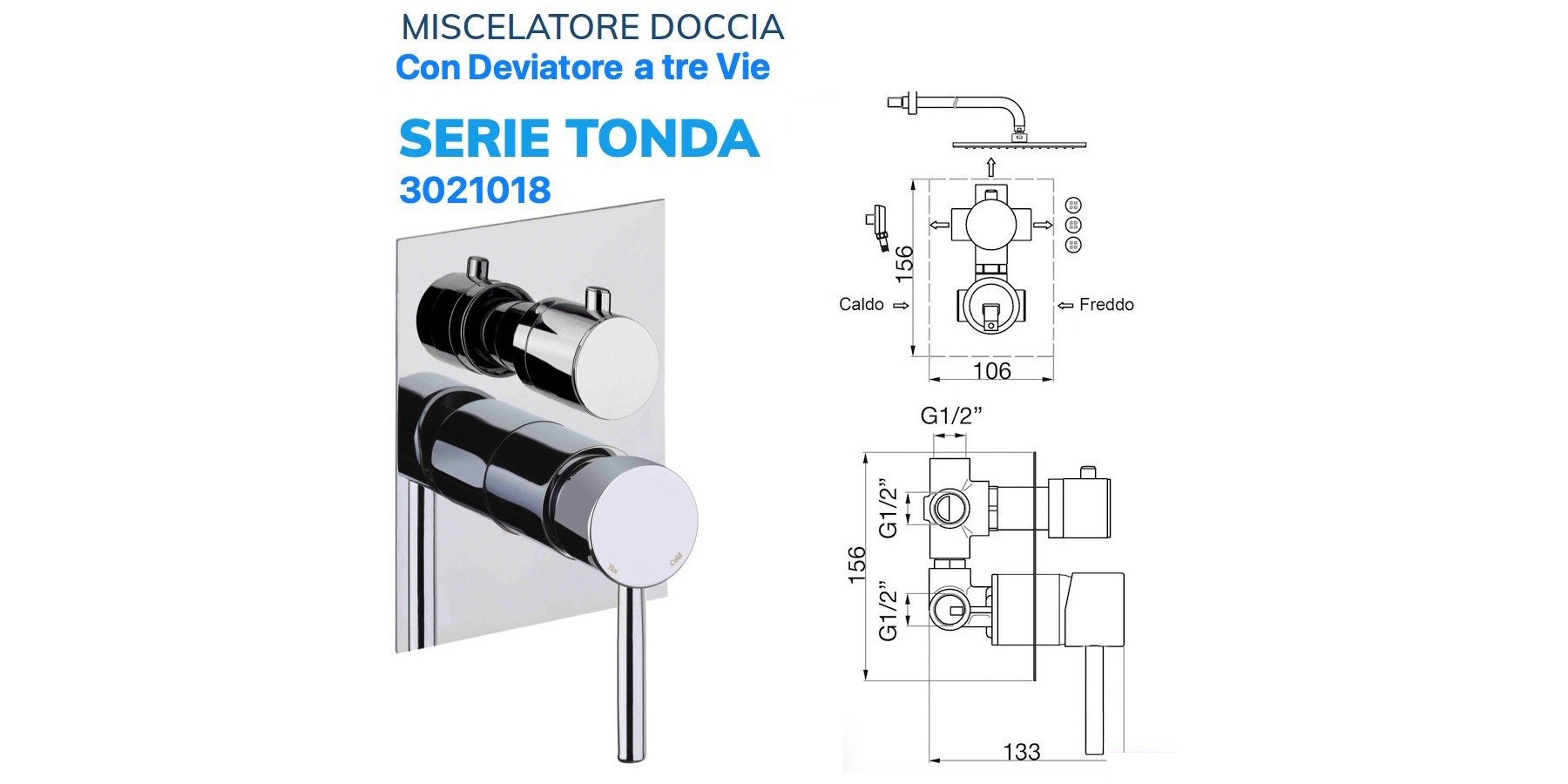 EINBAU-ZYLINDRISCHER DUSCHMISCHER MIT 3-WEGE-UMLEITVENTIL