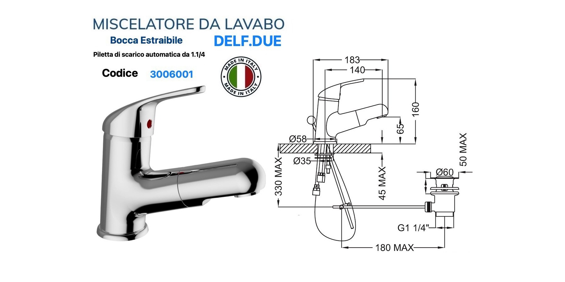 DESIA WASCHBECKENMISCHER MIT AUSZIEHBAREM AUSLAUF UND AUTOMATISCHER ABLAUFMENGE 1.1/4