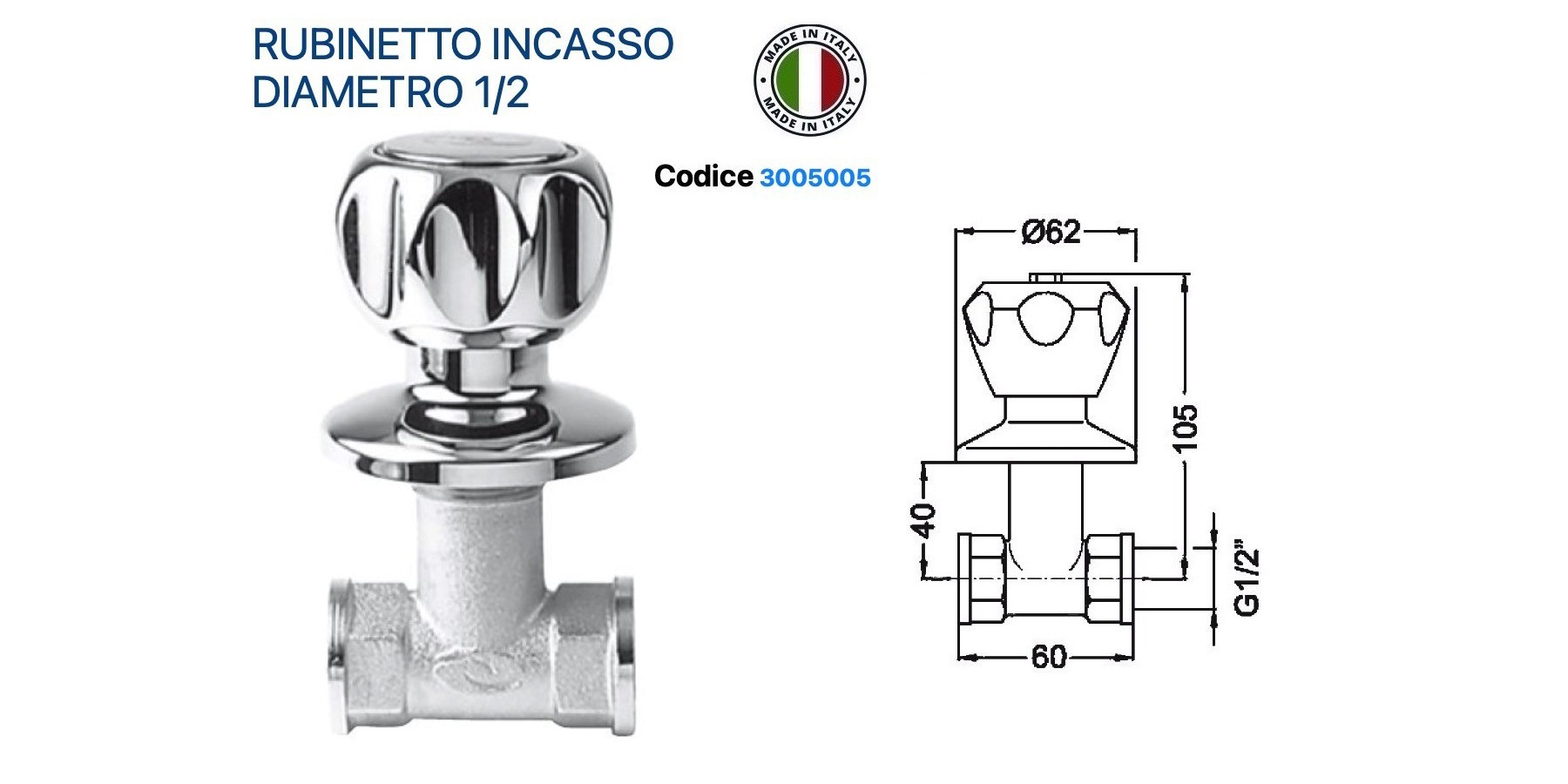 Armatur mit 1/2-Kegelventil, traditionell, aus schwerem verchromtem Messing, KOMPLETT IN ITALIEN HERGESTELLT